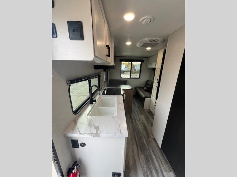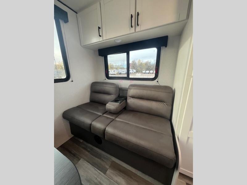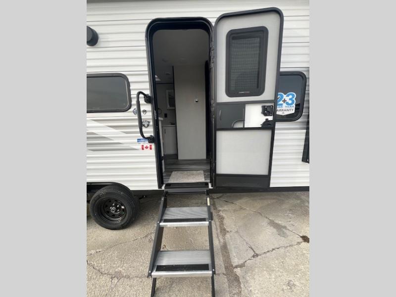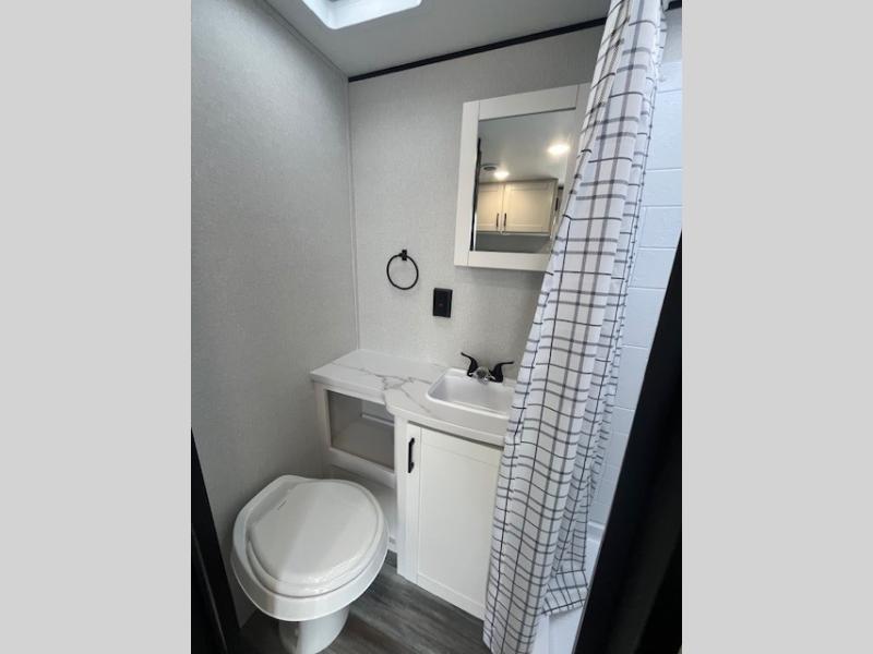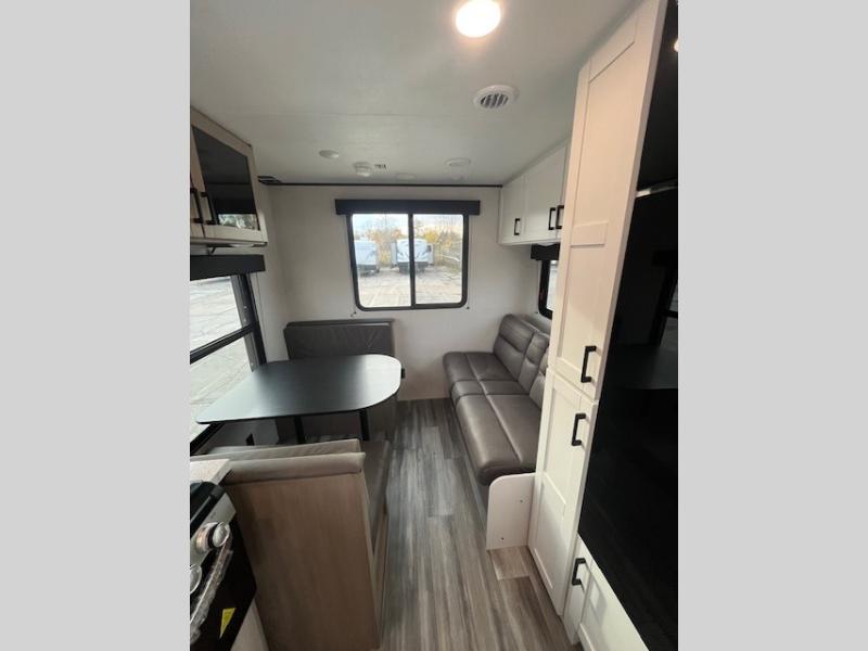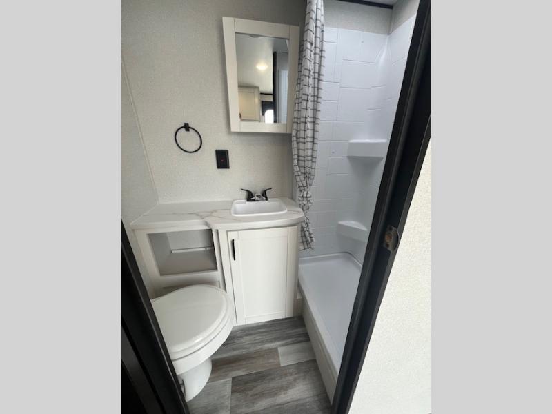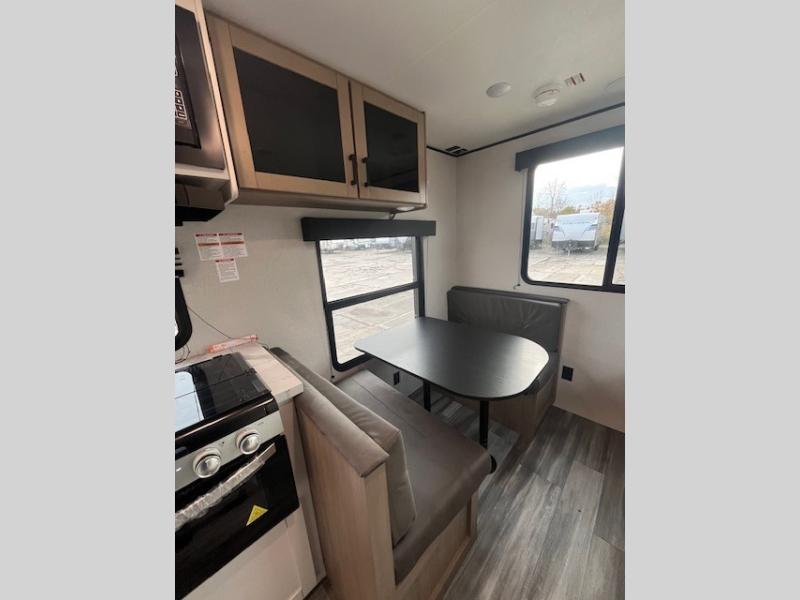 Camping in the woods is just what the doctor ordered and this trailer will provide all the interior comforts you need! There is a three burner cooktop and a microwave oven to prepare meals each day, plus an 8 cu. ft. 12V refrigerator for cold items. After your meal is made, you can dine at the booth dinette or relax on the jack-knife sofa, and these areas can become sleeping space for two to three guests at night. The full bath with a shower means you won't have to use the camp's facilities and the 16' power awning will provide protection from the sun as you visit with other campers!