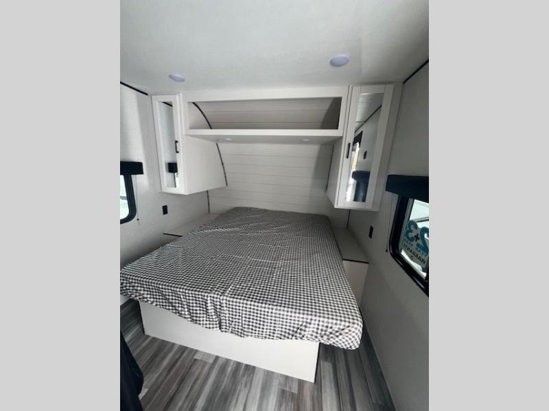 The Jayco Jay Flight SLX travel trailer is quite easy to own because it is lightweight for an easier towing experience. Built on a fully integrated A-frame with galvanized-steel, impact-resistant wheel wells, the Jay Flight SLX has quality at its very foundation. That quality continues on to the electric self-adjusting brakes, easy-lube hubs, Magnum Truss roof system, and LP quick connect. Some of what the mandatory Customer Value Package includes is backup camera prep, Keyed-Alike entry and baggage doors, and an on-demand tankless water heater.