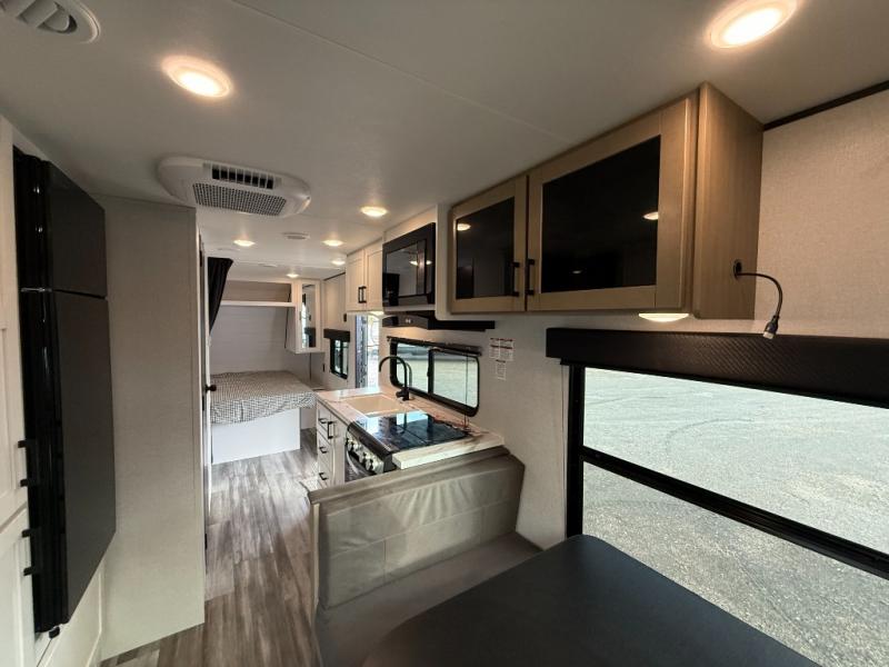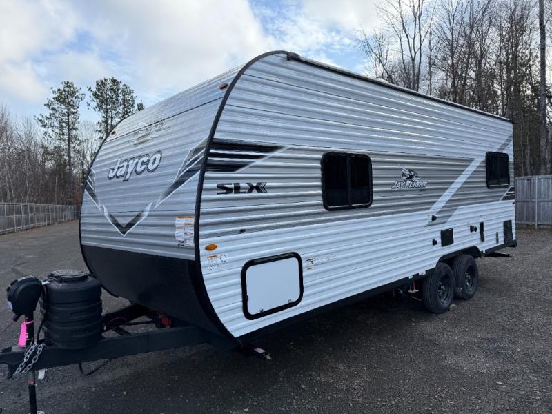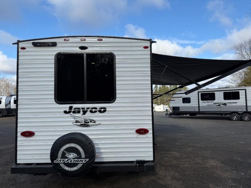 The Jayco Jay Flight SLX travel trailer is quite easy to own because it is lightweight for an easier towing experience. Built on a fully integrated A-frame with galvanized-steel, impact-resistant wheel wells, the Jay Flight SLX has quality at its very foundation. That quality continues on to the electric self-adjusting brakes, easy-lube hubs, Magnum Truss roof system, and LP quick connect. Some of what the mandatory Customer Value Package includes is backup camera prep, Keyed-Alike entry and baggage doors, and an on-demand tankless water heater.