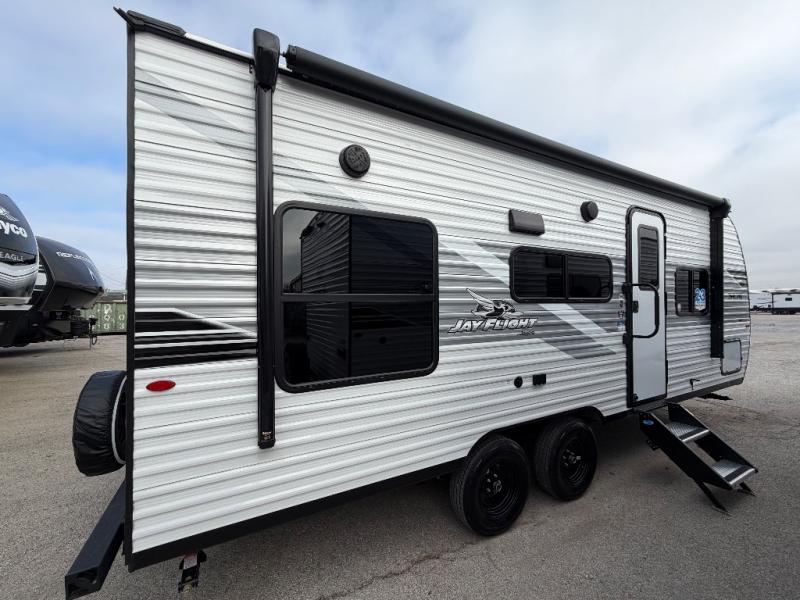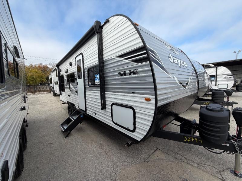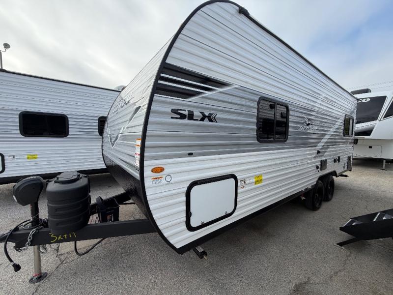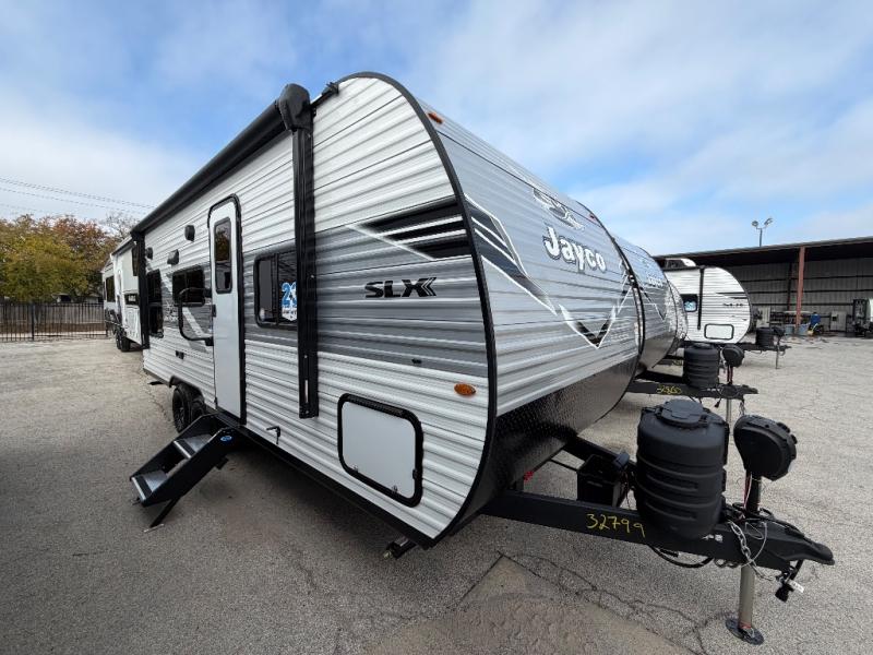 The Jayco Jay Flight SLX travel trailer is quite easy to own because it is lightweight for an easier towing experience. Built on a fully integrated A-frame with galvanized-steel, impact-resistant wheel wells, the Jay Flight SLX has quality at its very foundation. That quality continues on to the electric self-adjusting brakes, easy-lube hubs, Magnum Truss roof system, and LP quick connect. Some of what the mandatory Customer Value Package includes is backup camera prep, Keyed-Alike entry and baggage doors, and an on-demand tankless water heater.