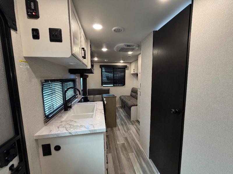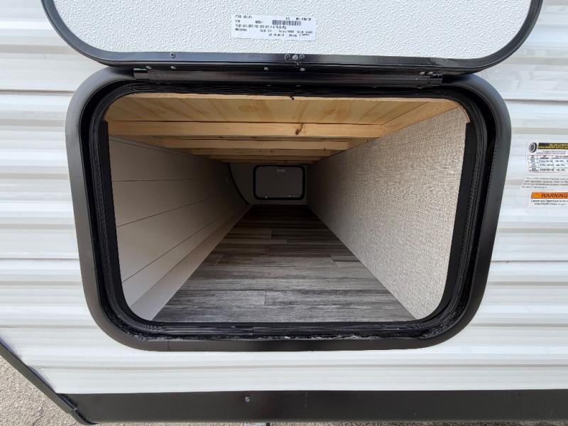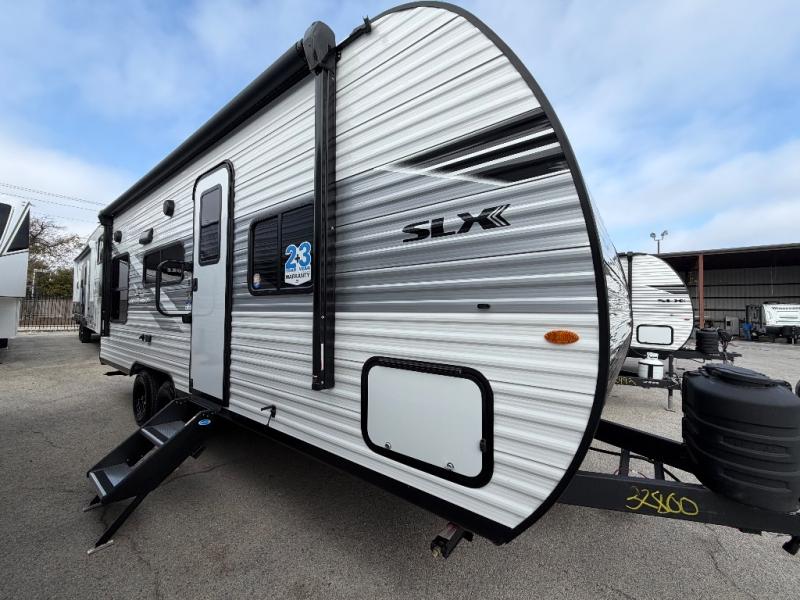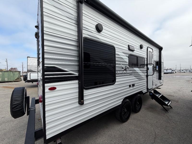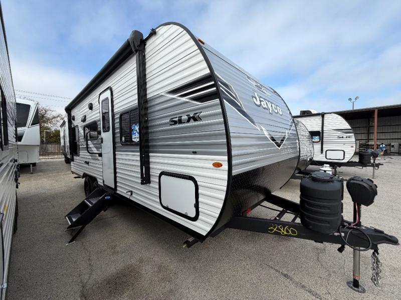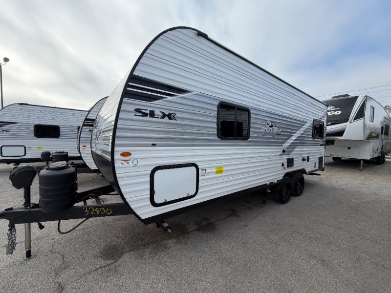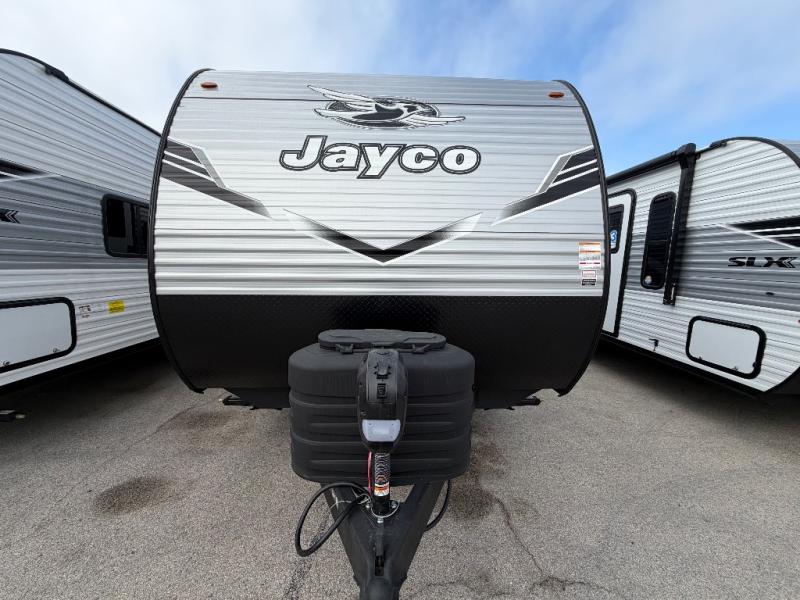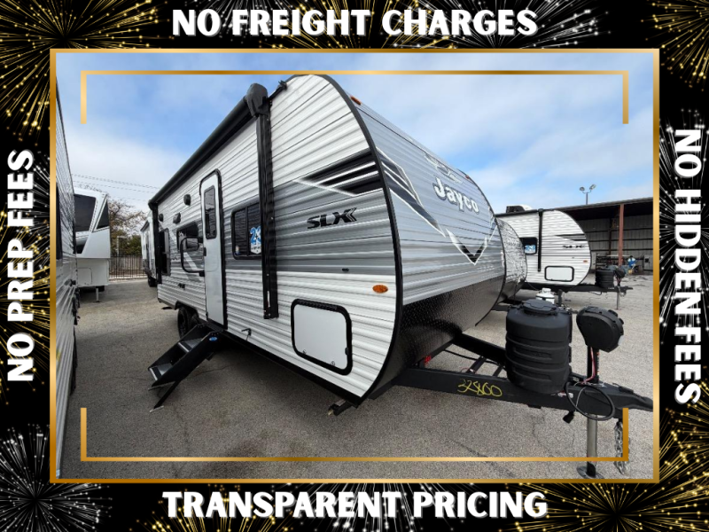 The Jayco Jay Flight SLX travel trailer is quite easy to own because it is lightweight for an easier towing experience. Built on a fully integrated A-frame with galvanized-steel, impact-resistant wheel wells, the Jay Flight SLX has quality at its very foundation. That quality continues on to the electric self-adjusting brakes, easy-lube hubs, Magnum Truss roof system, and LP quick connect. Some of what the mandatory Customer Value Package includes is backup camera prep, Keyed-Alike entry and baggage doors, and an on-demand tankless water heater.