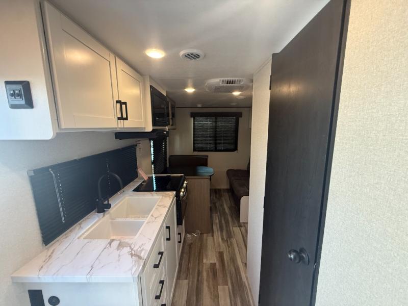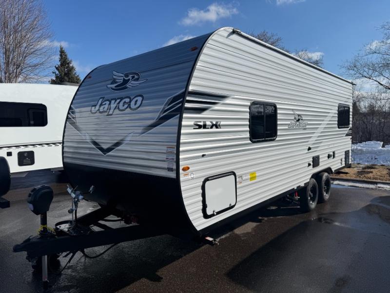 The Jayco Jay Flight SLX travel trailer is quite easy to own because it is lightweight for an easier towing experience. Built on a fully integrated A-frame with galvanized-steel, impact-resistant wheel wells, the Jay Flight SLX has quality at its very foundation. That quality continues on to the electric self-adjusting brakes, easy-lube hubs, Magnum Truss roof system, and LP quick connect. Some of what the mandatory Customer Value Package includes is backup camera prep, Keyed-Alike entry and baggage doors, and an on-demand tankless water heater.