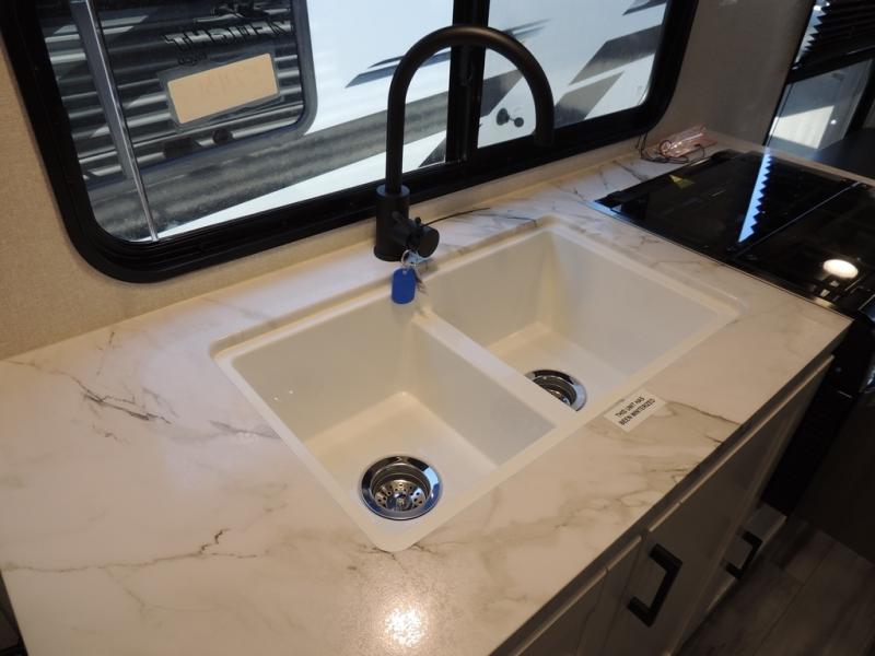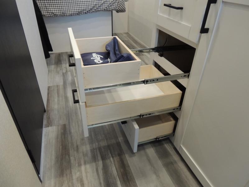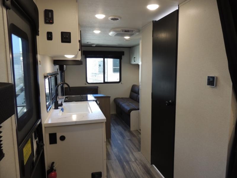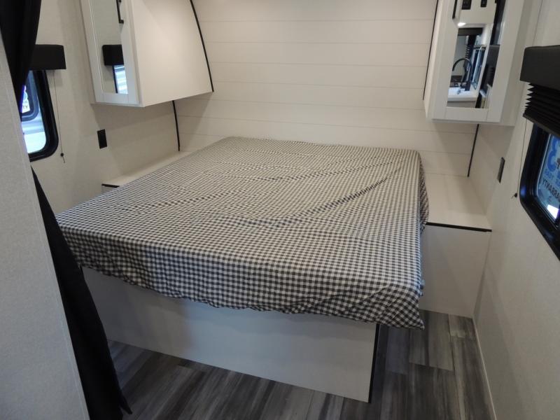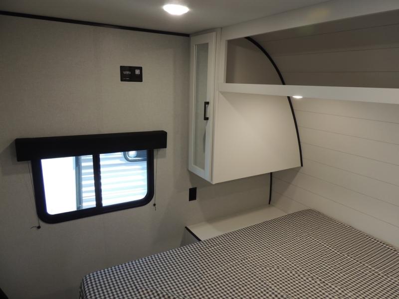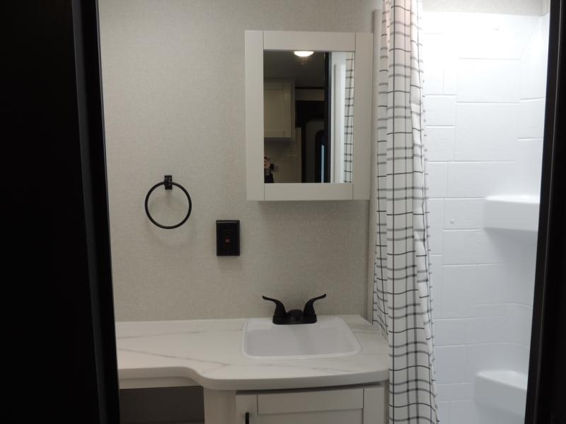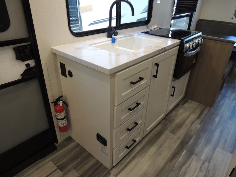 Camping in the woods is just what the doctor ordered and this trailer will provide all the interior comforts you need! There is a three burner cooktop and a microwave oven to prepare meals each day, plus an 8 cu. ft. 12V refrigerator for cold items. After your meal is made, you can dine at the booth dinette or relax on the jack-knife sofa, and these areas can become sleeping space for two to three guests at night. The full bath with a shower means you won't have to use the camp's facilities and the 16' power awning will provide protection from the sun as you visit with other campers!