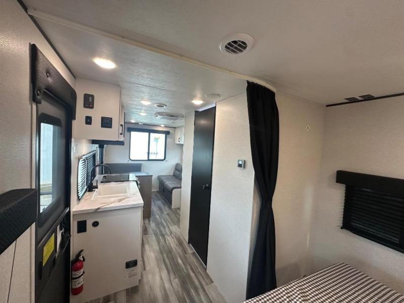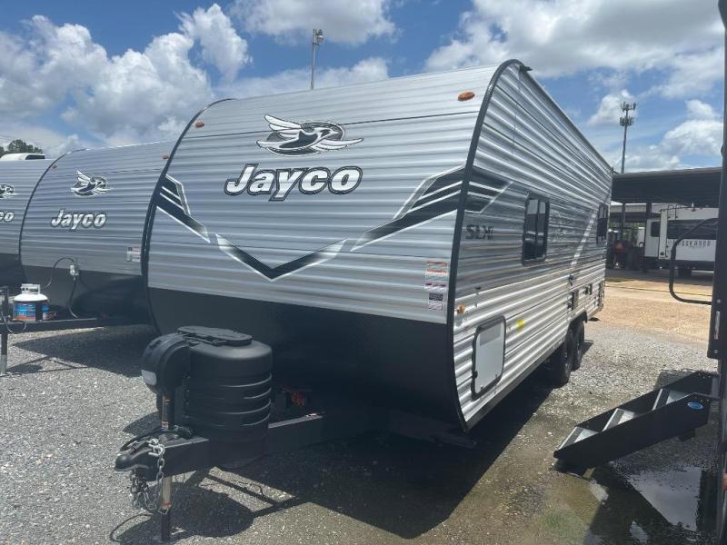 The Jayco Jay Flight SLX travel trailer is quite easy to own because it is lightweight for an easier towing experience. Built on a fully integrated A-frame with galvanized-steel, impact-resistant wheel wells, the Jay Flight SLX has quality at its very foundation. That quality continues on to the electric self-adjusting brakes, easy-lube hubs, Magnum Truss roof system, and LP quick connect. Some of what the mandatory Customer Value Package includes is backup camera prep, Keyed-Alike entry and baggage doors, and an on-demand tankless water heater.