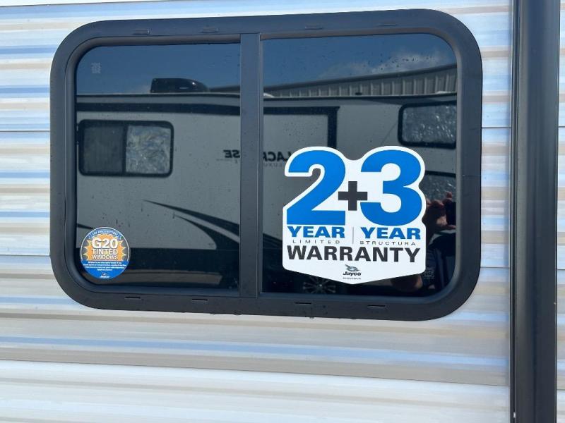 The Jayco Jay Flight SLX travel trailer is quite easy to own because it is lightweight for an easier towing experience. Built on a fully integrated A-frame with galvanized-steel, impact-resistant wheel wells, the Jay Flight SLX has quality at its very foundation. That quality continues on to the electric self-adjusting brakes, easy-lube hubs, Magnum Truss roof system, and LP quick connect. Some of what the mandatory Customer Value Package includes is backup camera prep, Keyed-Alike entry and baggage doors, and an on-demand tankless water heater.