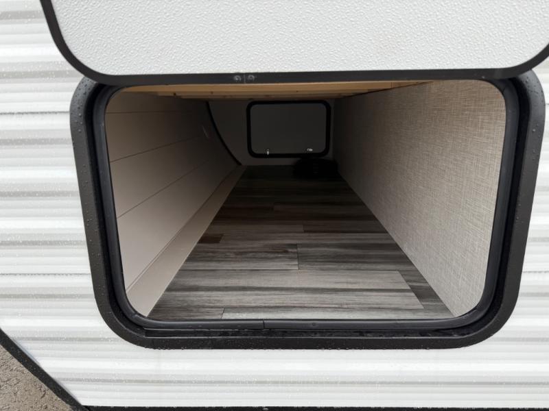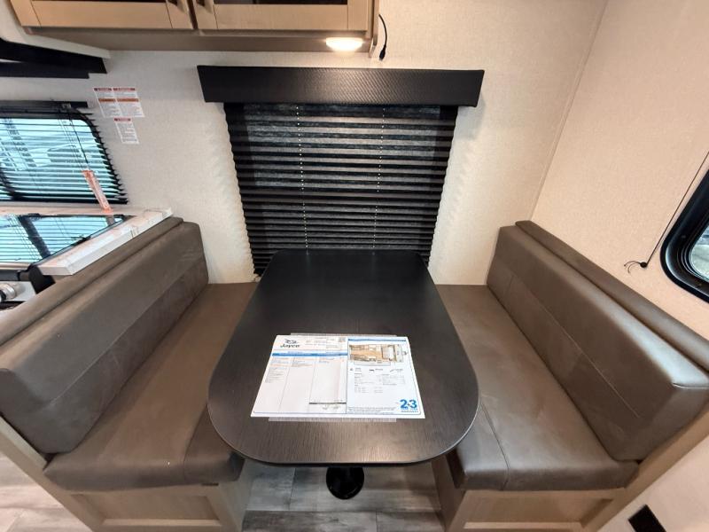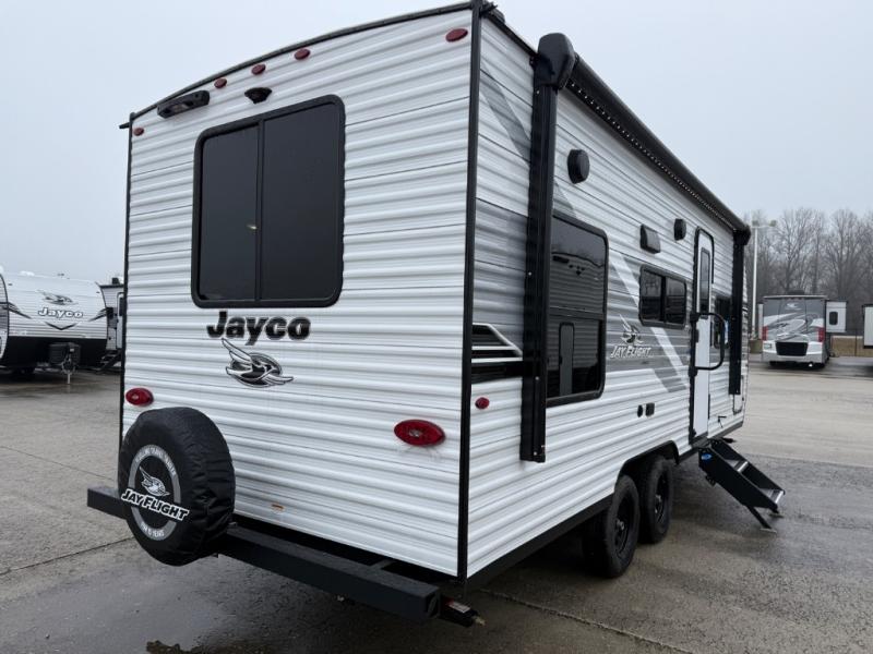 The Jayco Jay Flight SLX travel trailer is quite easy to own because it is lightweight for an easier towing experience. Built on a fully integrated A-frame with galvanized-steel, impact-resistant wheel wells, the Jay Flight SLX has quality at its very foundation. That quality continues on to the electric self-adjusting brakes, easy-lube hubs, Magnum Truss roof system, and LP quick connect. Some of what the mandatory Customer Value Package includes is backup camera prep, Keyed-Alike entry and baggage doors, and an on-demand tankless water heater.