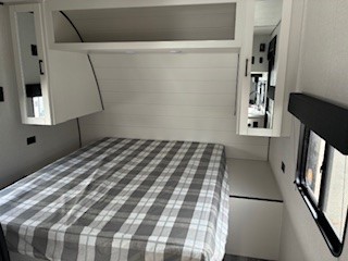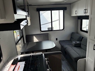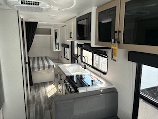 Camping in the woods is just what the doctor ordered and this trailer will provide all the interior comforts you need! There is a three burner cooktop and a microwave oven to prepare meals each day, plus an 8 cu. ft. 12V refrigerator for cold items. After your meal is made, you can dine at the booth dinette or relax on the jack-knife sofa, and these areas can become sleeping space for two to three guests at night. The full bath with a tub/shower means you won't have to use the camp's facilities and the 16' power awning will provide protection from the sun as you visit with other campers!