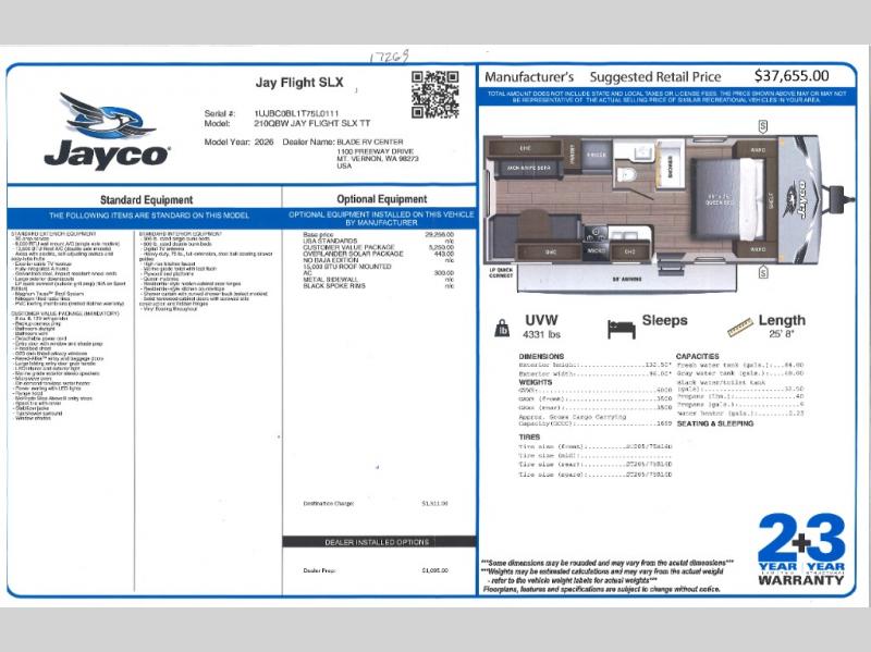 New 2026 Jayco Jay Flight SLX 210QBW Travel Trailer