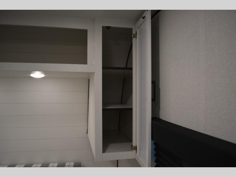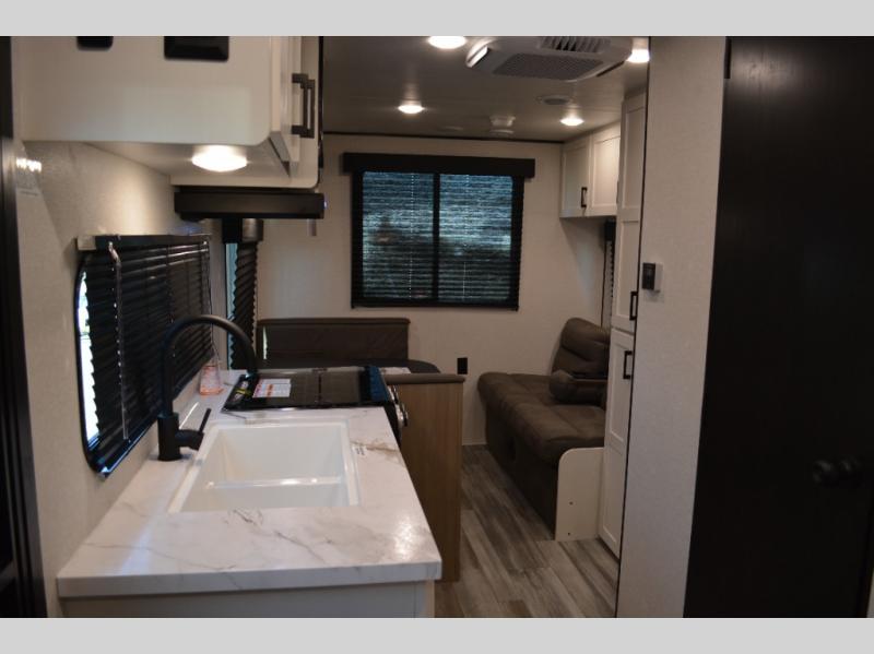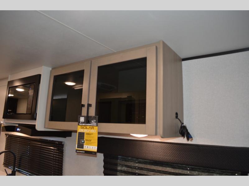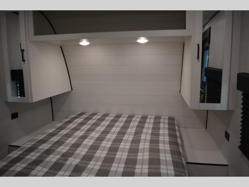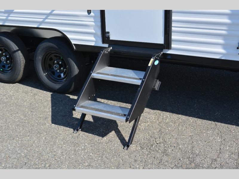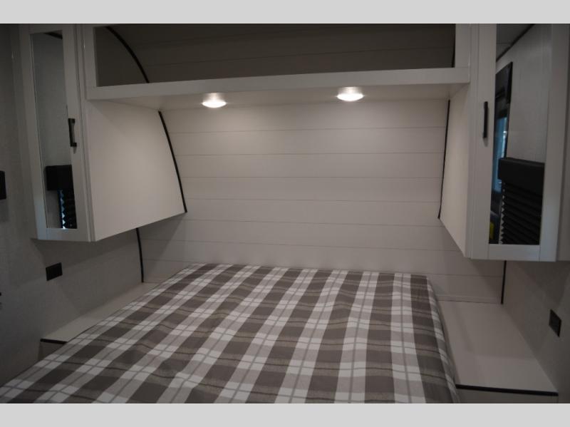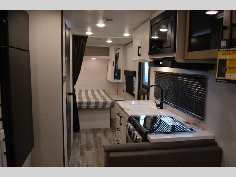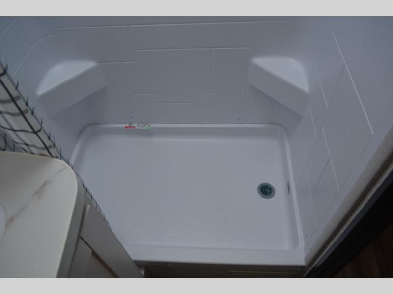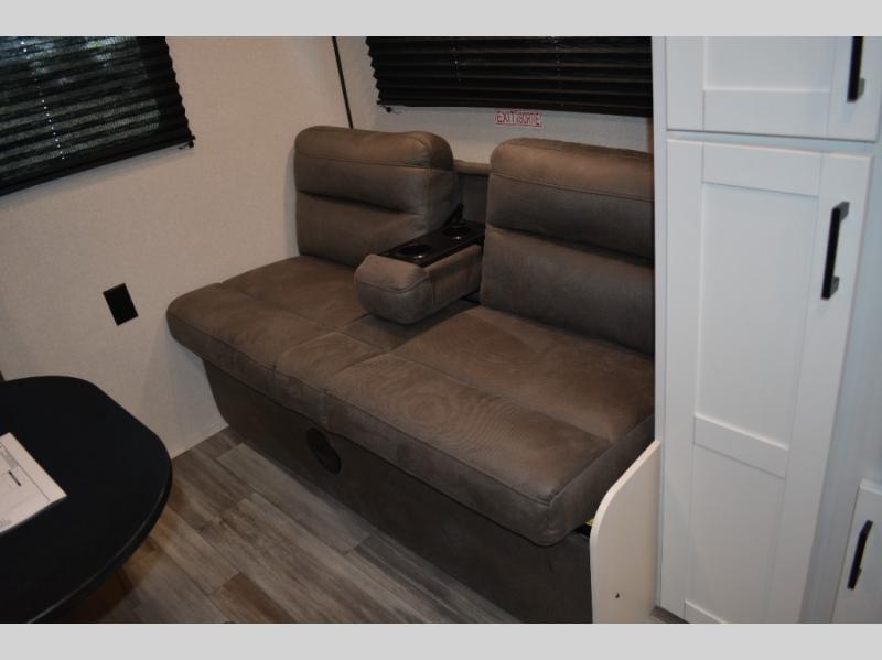 Camping in the woods is just what the doctor ordered and this trailer will provide all the interior comforts you need! There is a three burner cooktop and a microwave oven to prepare meals each day, plus an 8 cu. ft. 12V refrigerator for cold items. After your meal is made, you can dine at the booth dinette or relax on the jack-knife sofa, and these areas can become sleeping space for two to three guests at night. The full bath with a shower means you won't have to use the camp's facilities and the 16' power awning will provide protection from the sun as you visit with other campers!