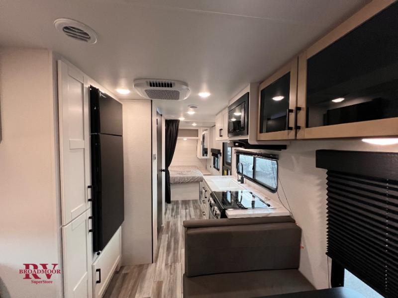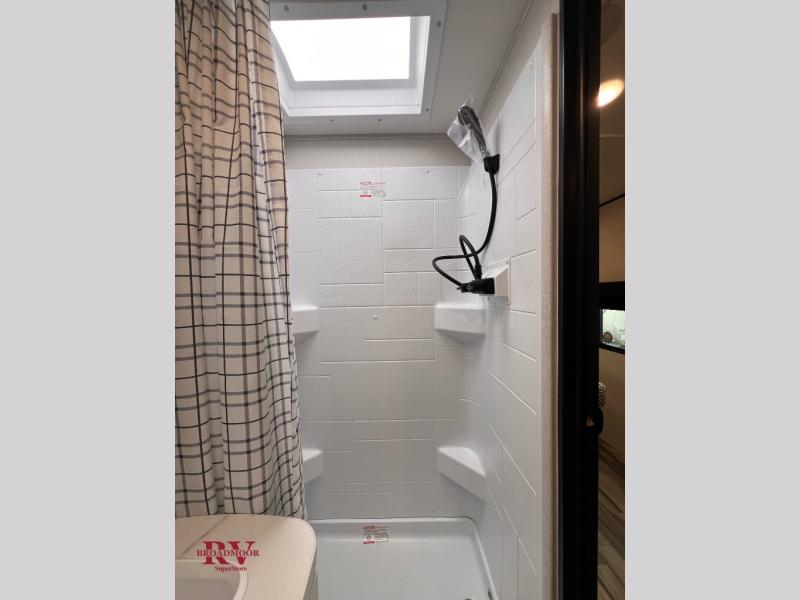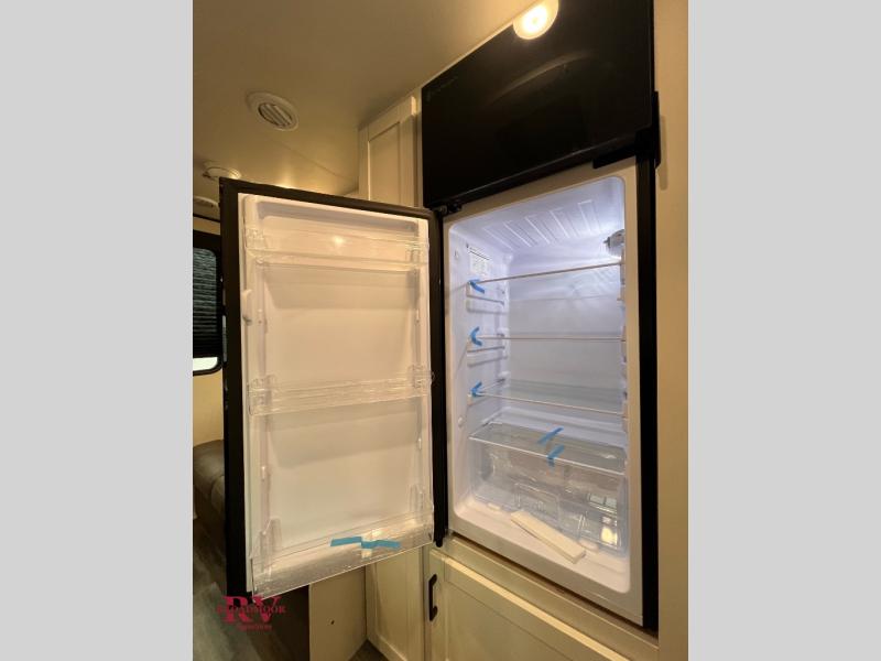 Camping in the woods is just what the doctor ordered and this trailer will provide all the interior comforts you need! There is a three burner cooktop and a microwave oven to prepare meals each day, plus an 8 cu. ft. 12V refrigerator for cold items. After your meal is made, you can dine at the booth dinette or relax on the jack-knife sofa, and these areas can become sleeping space for two to three guests at night. The full bath with a shower means you won't have to use the camp's facilities and the 16' power awning will provide protection from the sun as you visit with other campers!