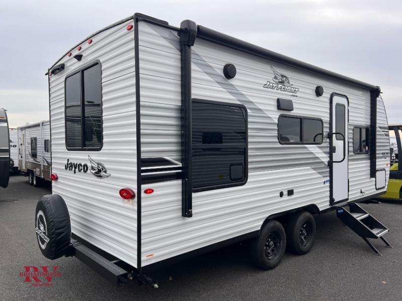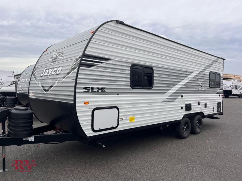 The Jayco Jay Flight SLX travel trailer is quite easy to own because it is lightweight for an easier towing experience. Built on a fully integrated A-frame with galvanized-steel, impact-resistant wheel wells, the Jay Flight SLX has quality at its very foundation. That quality continues on to the electric self-adjusting brakes, easy-lube hubs, Magnum Truss roof system, and LP quick connect. Some of what the mandatory Customer Value Package includes is backup camera prep, Keyed-Alike entry and baggage doors, and an on-demand tankless water heater.