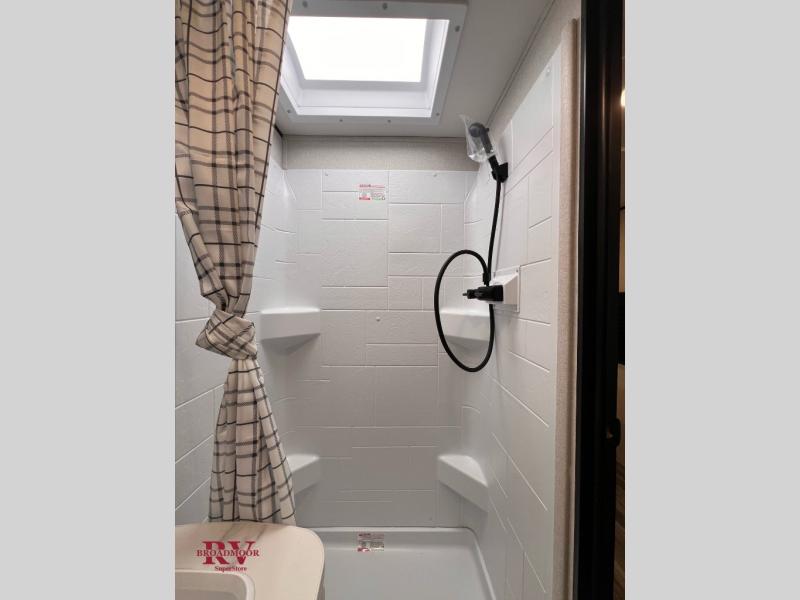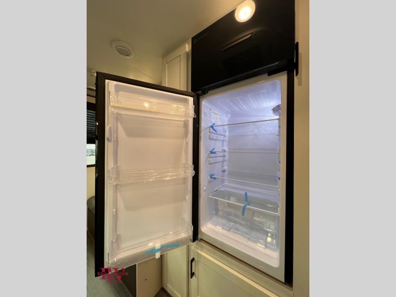 Camping in the woods is just what the doctor ordered and this trailer will provide all the interior comforts you need! There is a three burner cooktop and a microwave oven to prepare meals each day, plus an 8 cu. ft. 12V refrigerator for cold items. After your meal is made, you can dine at the booth dinette or relax on the jack-knife sofa, and these areas can become sleeping space for two to three guests at night. The full bath with a shower means you won't have to use the camp's facilities and the 16' power awning will provide protection from the sun as you visit with other campers!