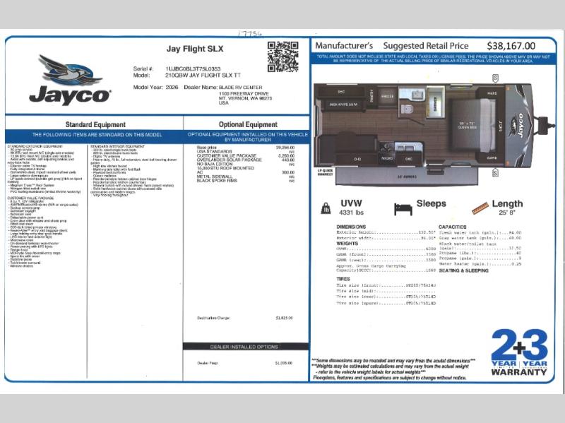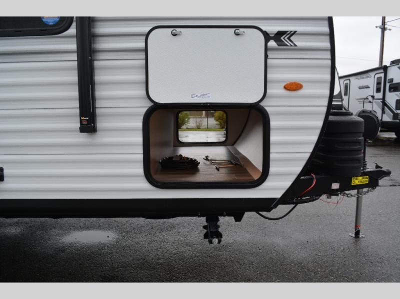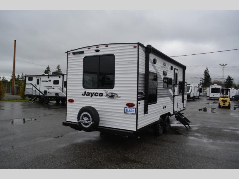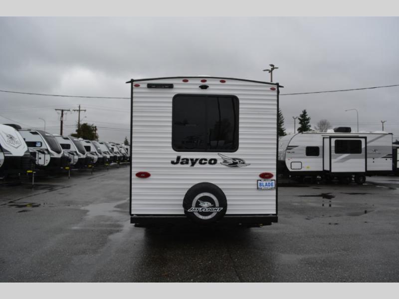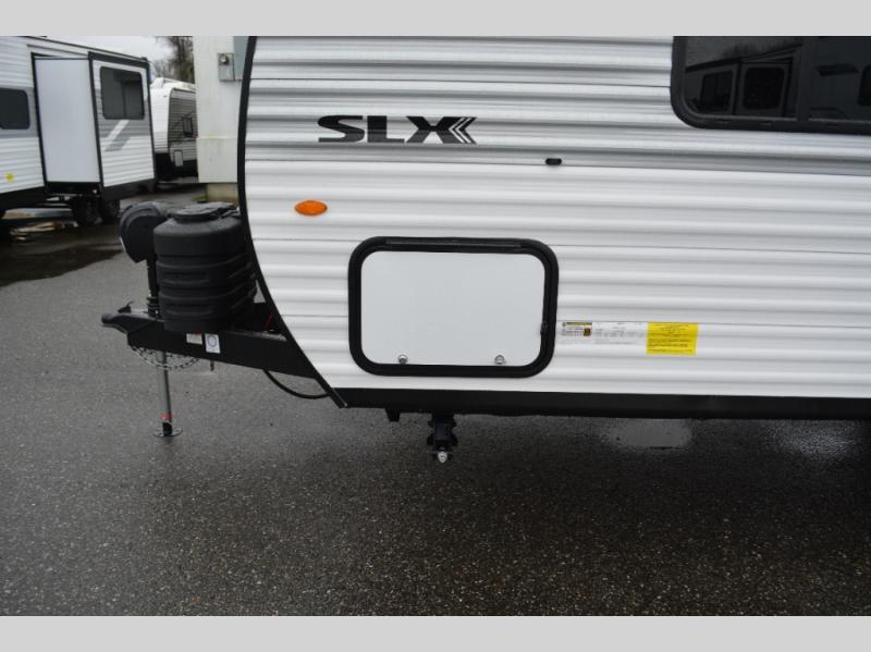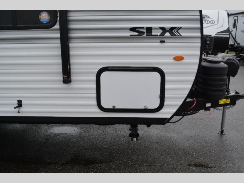 The Jayco Jay Flight SLX travel trailer is quite easy to own because it is lightweight for an easier towing experience. Built on a fully integrated A-frame with galvanized-steel, impact-resistant wheel wells, the Jay Flight SLX has quality at its very foundation. That quality continues on to the electric self-adjusting brakes, easy-lube hubs, Magnum Truss roof system, and LP quick connect. Some of what the mandatory Customer Value Package includes is backup camera prep, Keyed-Alike entry and baggage doors, and an on-demand tankless water heater.