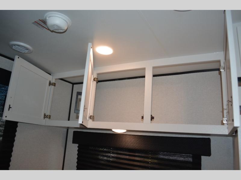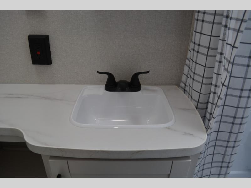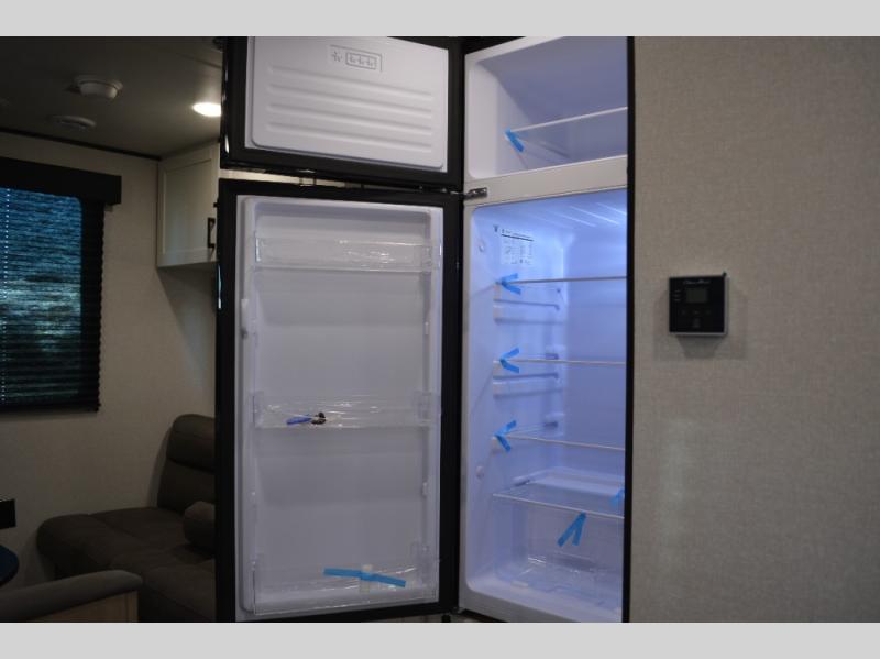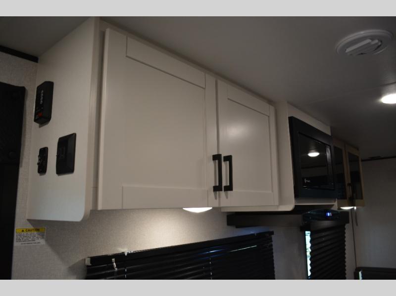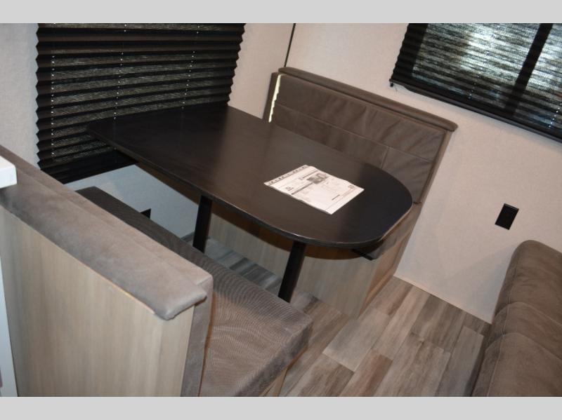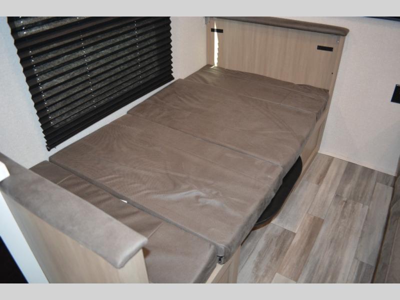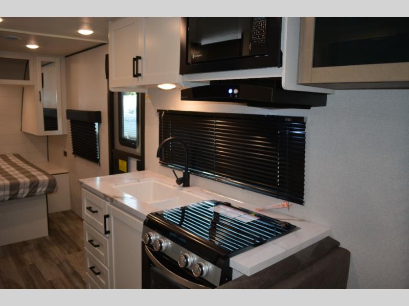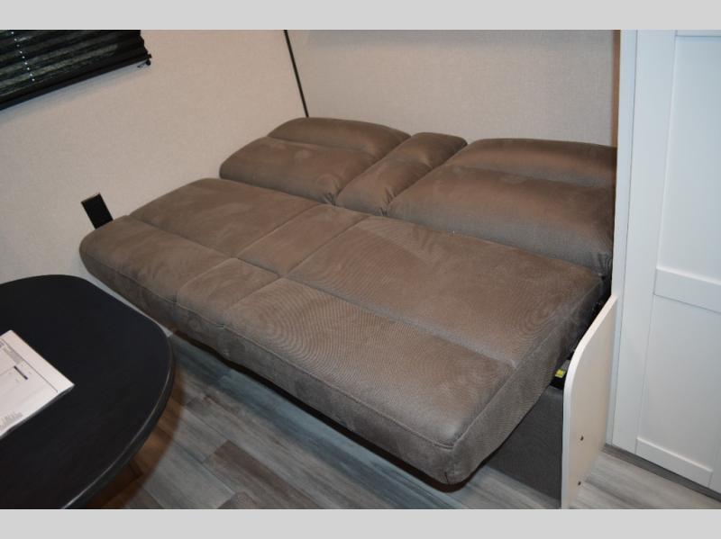 Camping in the woods is just what the doctor ordered and this trailer will provide all the interior comforts you need! There is a three burner cooktop and a microwave oven to prepare meals each day, plus an 8 cu. ft. 12V refrigerator for cold items. After your meal is made, you can dine at the booth dinette or relax on the jack-knife sofa, and these areas can become sleeping space for two to three guests at night. The full bath with a shower means you won't have to use the camp's facilities and the 16' power awning will provide protection from the sun as you visit with other campers!