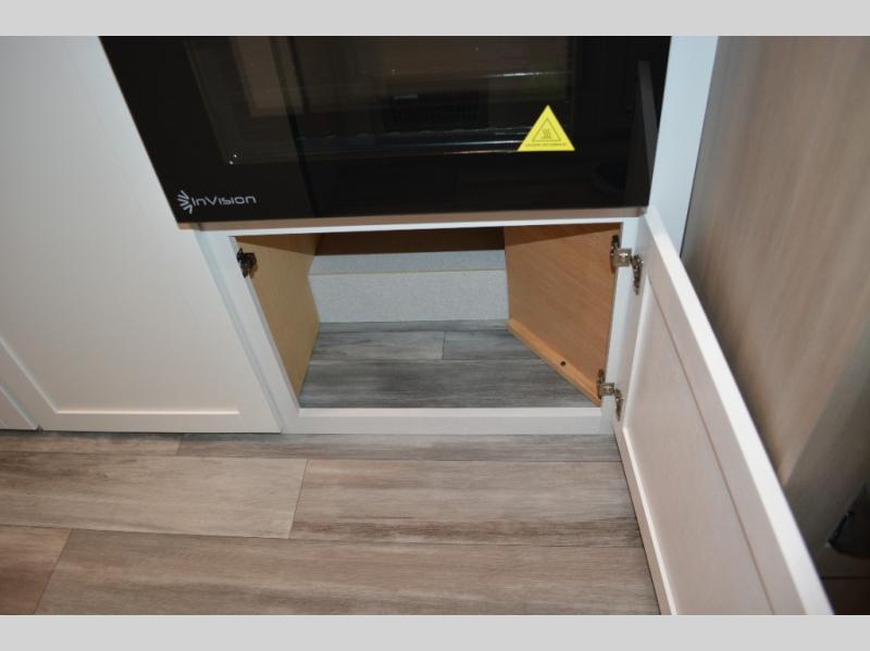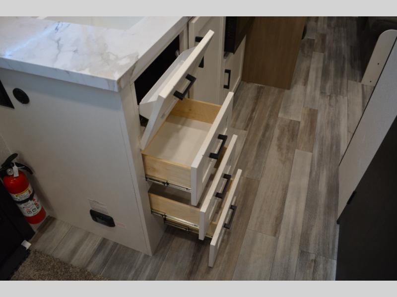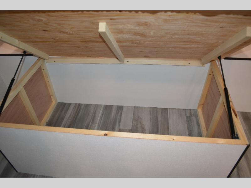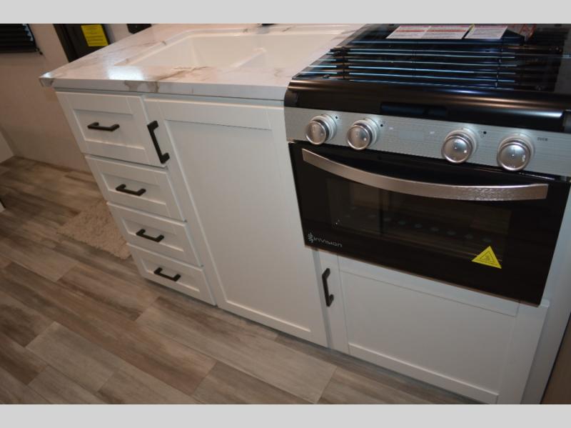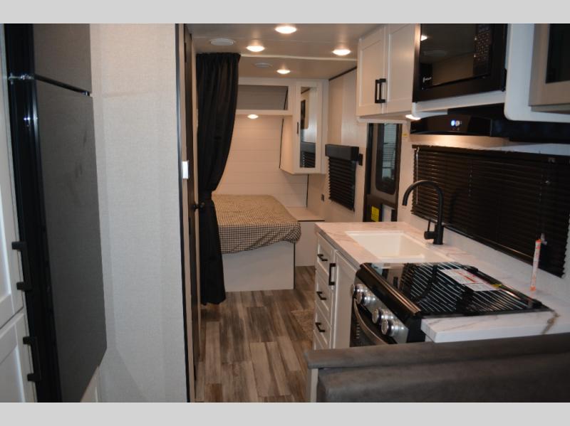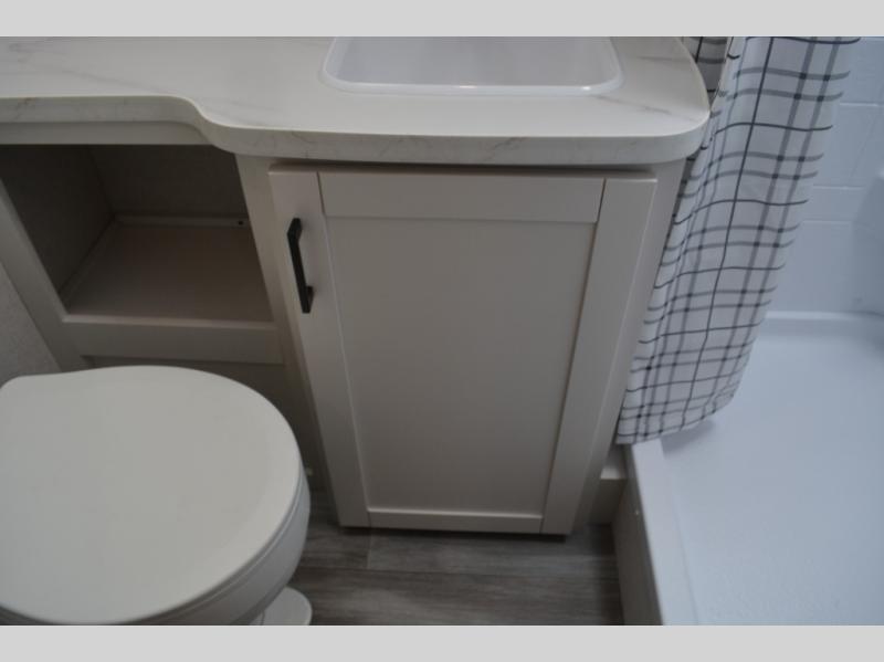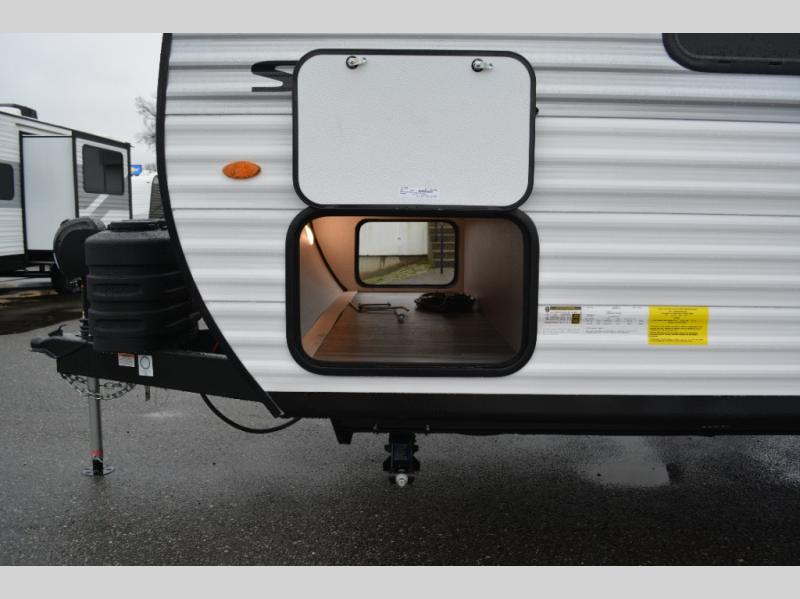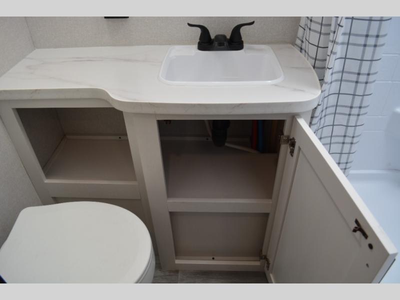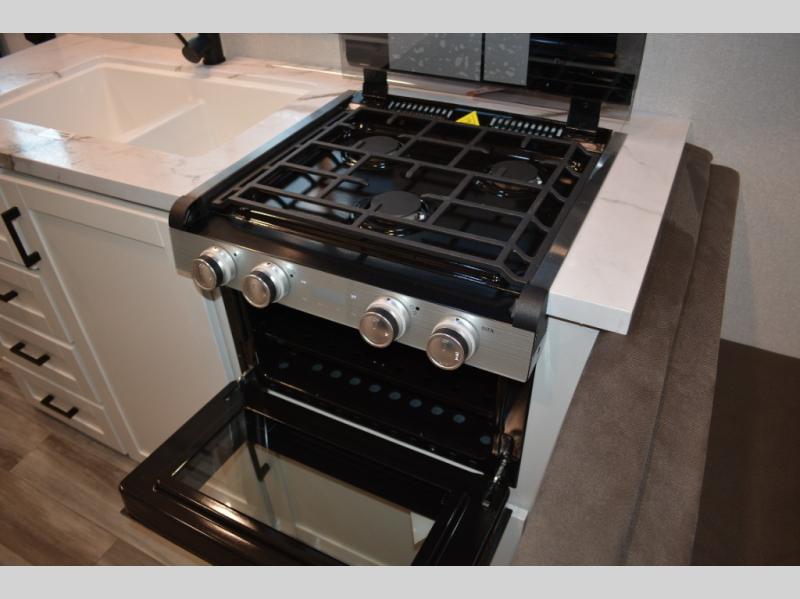 Camping in the woods is just what the doctor ordered and this trailer will provide all the interior comforts you need! There is a three burner cooktop and a microwave oven to prepare meals each day, plus an 8 cu. ft. 12V refrigerator for cold items. After your meal is made, you can dine at the booth dinette or relax on the jack-knife sofa, and these areas can become sleeping space for two to three guests at night. The full bath with a shower means you won't have to use the camp's facilities and the 16' power awning will provide protection from the sun as you visit with other campers!