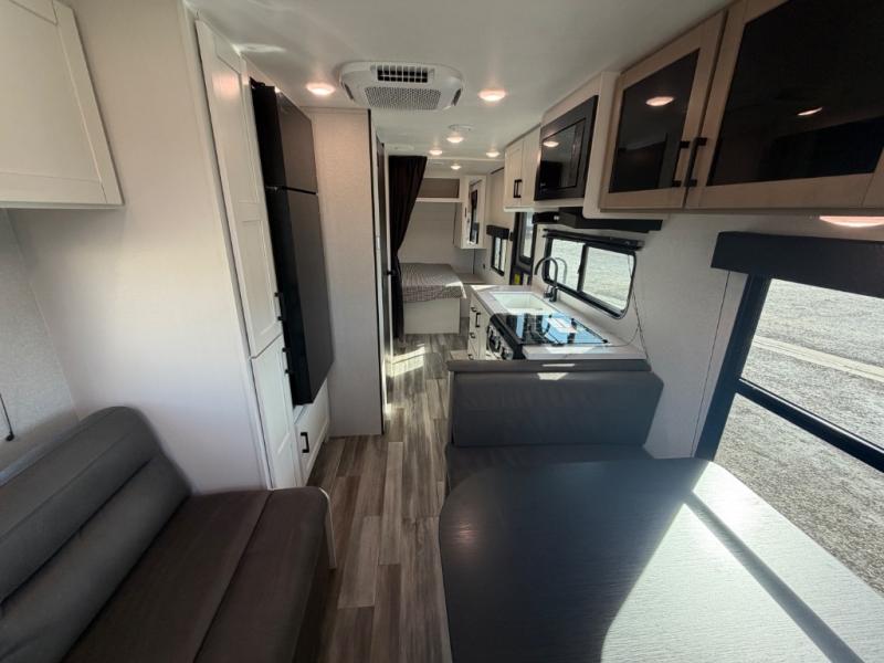 Camping in the woods is just what the doctor ordered and this trailer will provide all the interior comforts you need! There is a three burner cooktop and a microwave oven to prepare meals each day, plus an 8 cu. ft. 12V refrigerator for cold items. After your meal is made, you can dine at the booth dinette or relax on the jack-knife sofa, and these areas can become sleeping space for two to three guests at night. The full bath with a shower means you won't have to use the camp's facilities and the 16' power awning will provide protection from the sun as you visit with other campers!