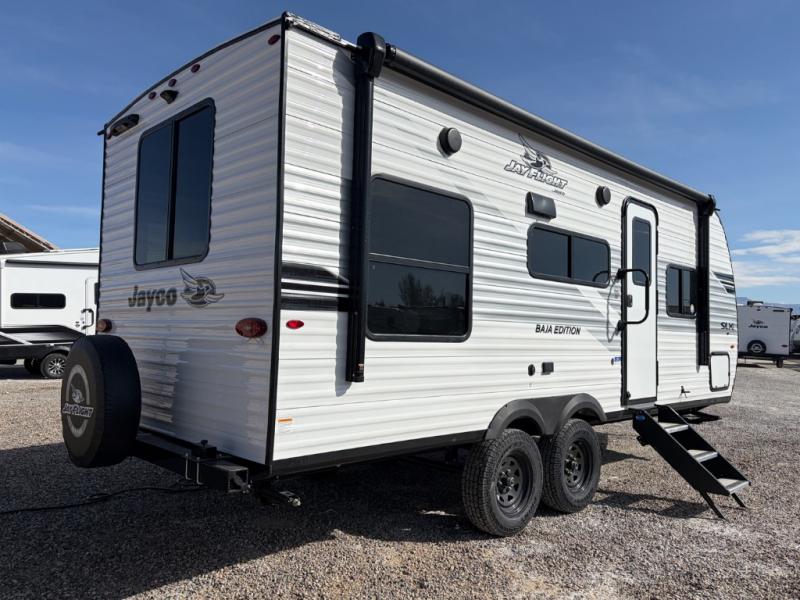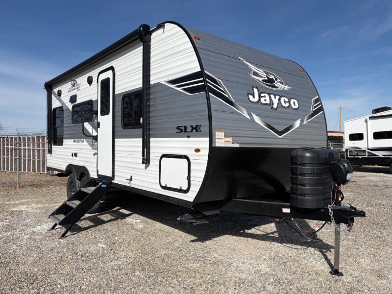 The Jayco Jay Flight SLX travel trailer is quite easy to own because it is lightweight for an easier towing experience. Built on a fully integrated A-frame with galvanized-steel, impact-resistant wheel wells, the Jay Flight SLX has quality at its very foundation. That quality continues on to the electric self-adjusting brakes, easy-lube hubs, Magnum Truss roof system, and LP quick connect. Some of what the mandatory Customer Value Package includes is backup camera prep, Keyed-Alike entry and baggage doors, and an on-demand tankless water heater.