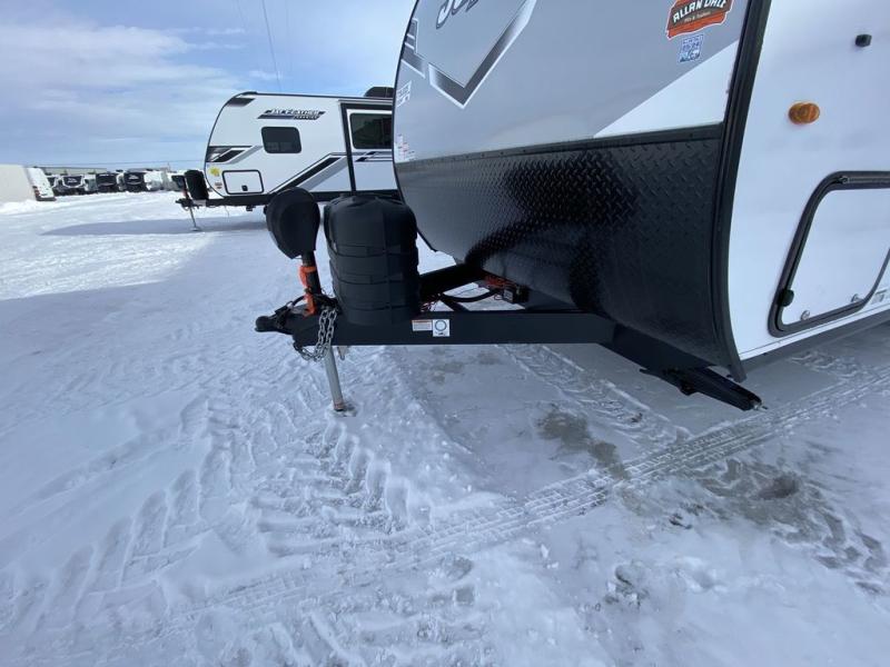 The Jayco Jay Flight SLX travel trailer is quite easy to own because it is lightweight for an easier towing experience. Built on a fully integrated A-frame with galvanized-steel, impact-resistant wheel wells, the Jay Flight SLX has quality at its very foundation. That quality continues on to the electric self-adjusting brakes, easy-lube hubs, Magnum Truss roof system, and LP quick connect. Some of what the mandatory Customer Value Package includes is backup camera prep, Keyed-Alike entry and baggage doors, and an on-demand tankless water heater.