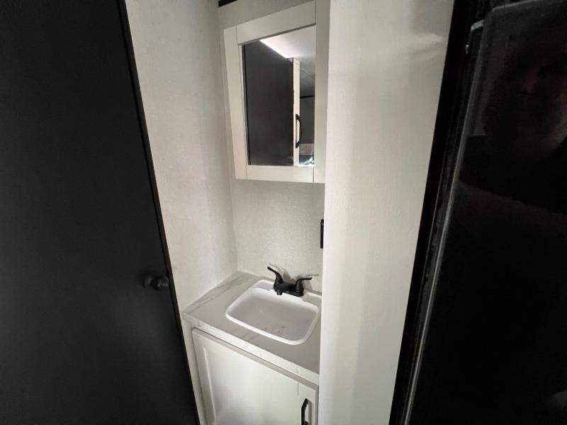 You'll love camping at the lake in this versatile travel trailer. Since there is a Murphy bed up front, you can fold it away in the morning to enjoy the Jack-knife sofa, plus there is a booth dinette for even more seating space. The microwave oven and cooktop in the kitchen allow you to make meals each day, and the 8 cu. ft. 12V refrigerator will keep perishables fresh. Your guests or the little ones are sure to love the double-size bunks, and the rear corner bath is right next to the bunks for easy nighttime use!
