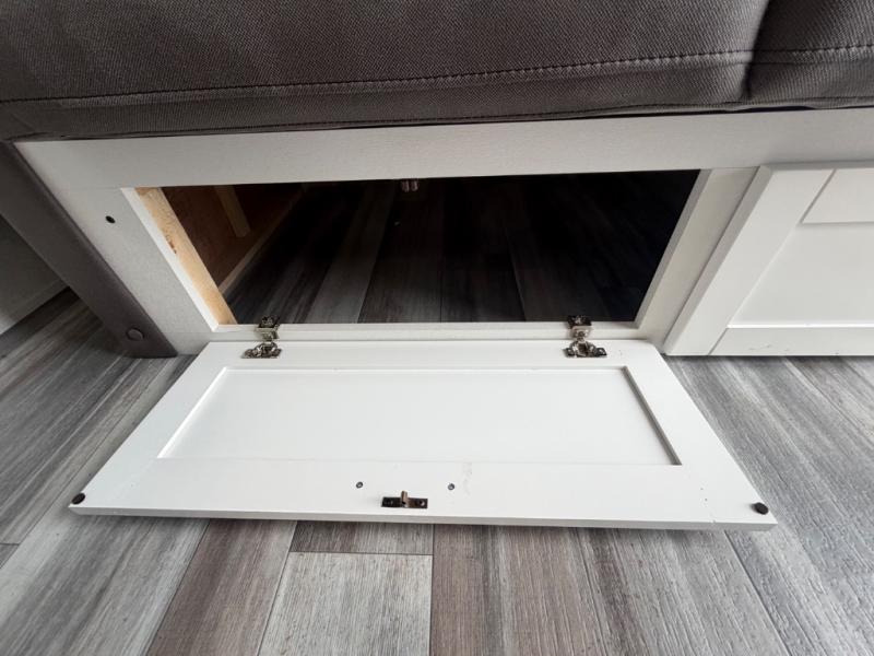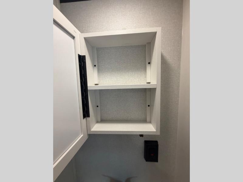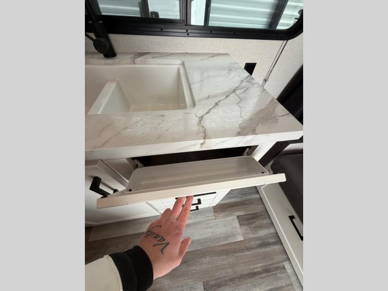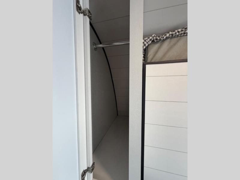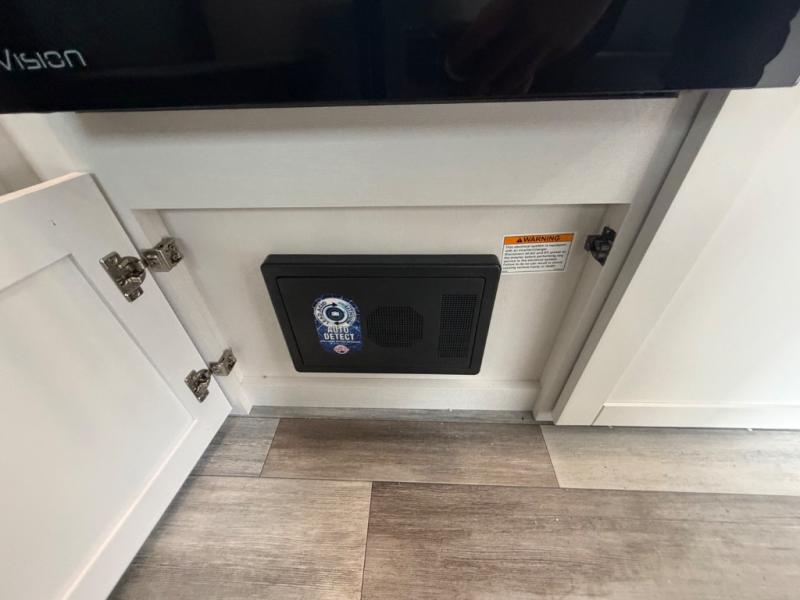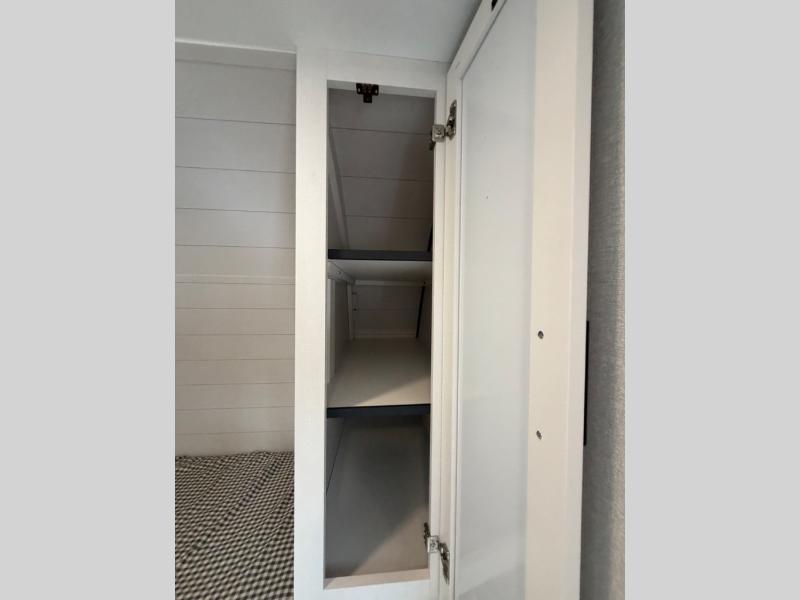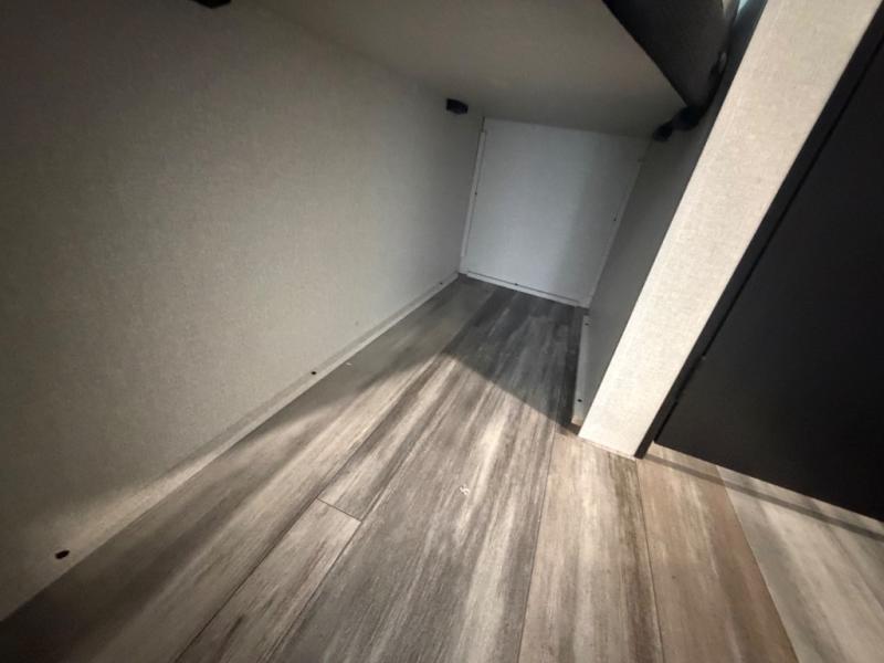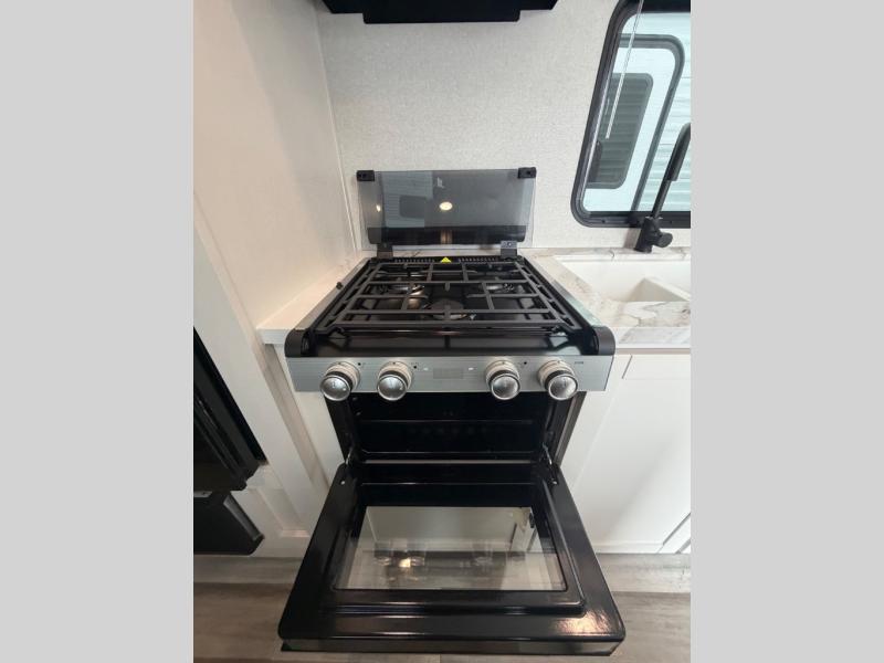 You'll love camping at the lake in this versatile travel trailer. Since there is a Murphy bed up front, you can fold it away in the morning to enjoy the Jack-knife sofa, plus there is a booth dinette for even more seating space. The microwave oven and cooktop in the kitchen allow you to make meals each day, and the 8 cu. ft. 12V refrigerator will keep perishables fresh. Your guests or the little ones are sure to love the double-size bunks, and the rear corner bath is right next to the bunks for easy nighttime use!