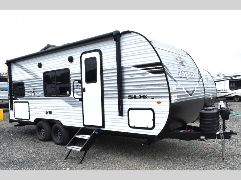 The Jayco Jay Flight SLX travel trailer is quite easy to own because it is lightweight for an easier towing experience. Built on a fully integrated A-frame with galvanized-steel, impact-resistant wheel wells, the Jay Flight SLX has quality at its very foundation. That quality continues on to the electric self-adjusting brakes, easy-lube hubs, Magnum Truss roof system, and LP quick connect. Some of what the mandatory Customer Value Package includes is backup camera prep, Keyed-Alike entry and baggage doors, marine grade exterior speakers, and an on-demand tankless water heater.