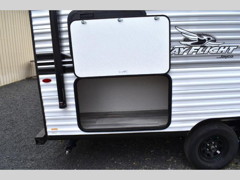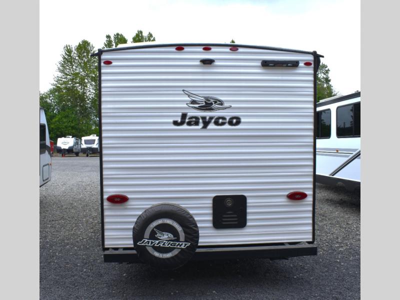 The Jayco Jay Flight SLX travel trailer is quite easy to own because it is lightweight for an easier towing experience. Built on a fully integrated A-frame with galvanized-steel, impact-resistant wheel wells, the Jay Flight SLX has quality at its very foundation. That quality continues on to the electric self-adjusting brakes, easy-lube hubs, Magnum Truss roof system, and LP quick connect. Some of what the mandatory Customer Value Package includes is backup camera prep, Keyed-Alike entry and baggage doors, marine grade exterior speakers, and an on-demand tankless water heater.