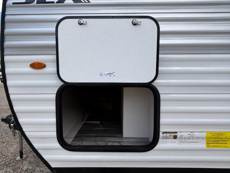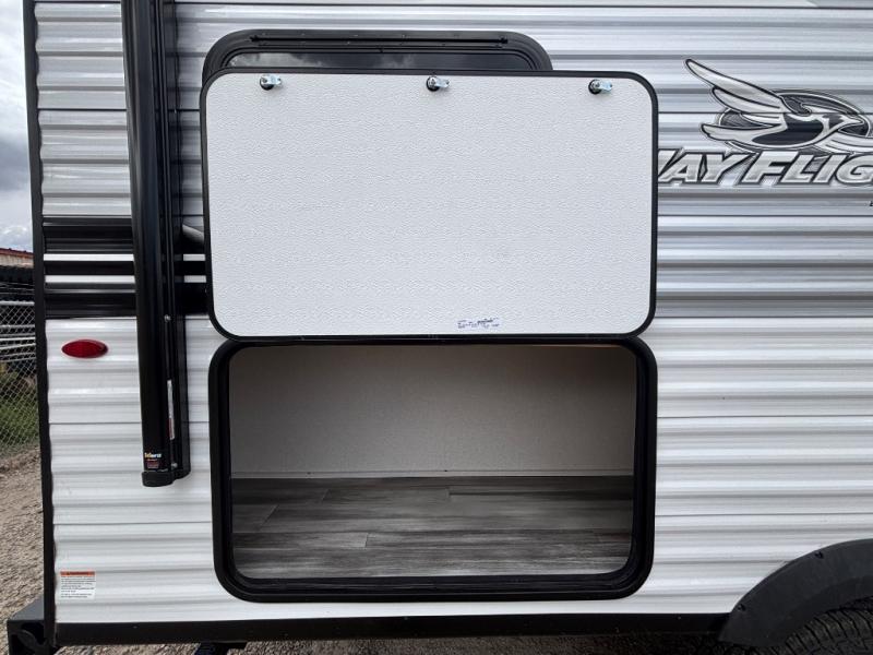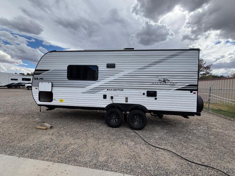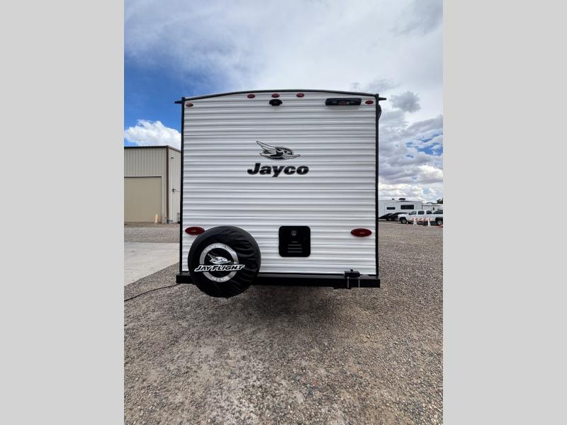 The Jayco Jay Flight SLX travel trailer is quite easy to own because it is lightweight for an easier towing experience. Built on a fully integrated A-frame with galvanized-steel, impact-resistant wheel wells, the Jay Flight SLX has quality at its very foundation. That quality continues on to the electric self-adjusting brakes, easy-lube hubs, Magnum Truss roof system, and LP quick connect. Some of what the mandatory Customer Value Package includes is backup camera prep, Keyed-Alike entry and baggage doors, and an on-demand tankless water heater.