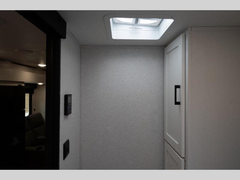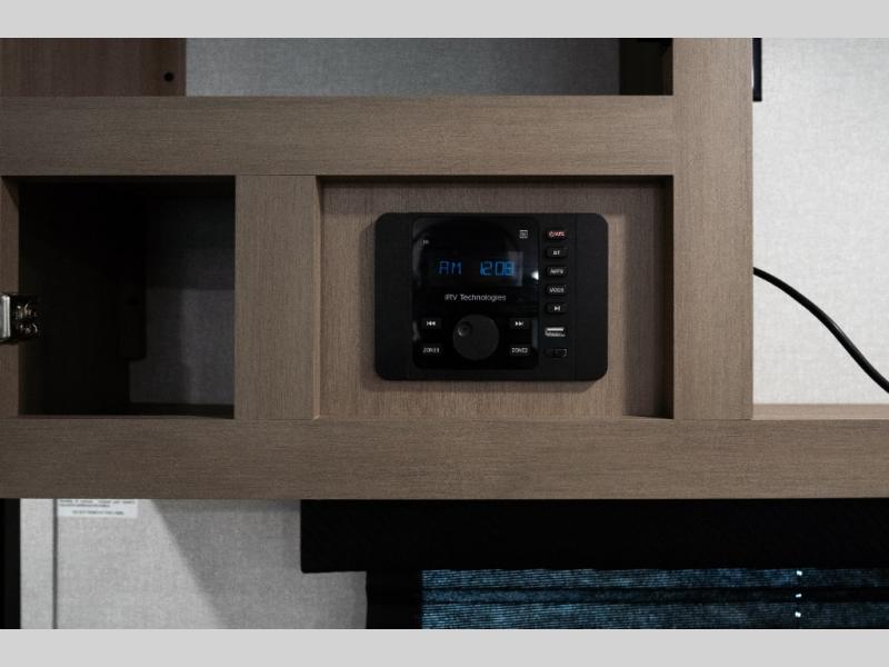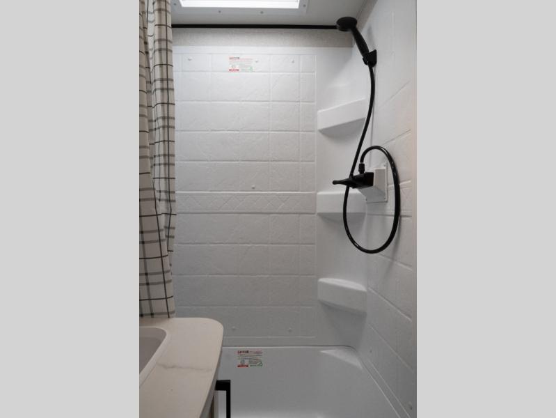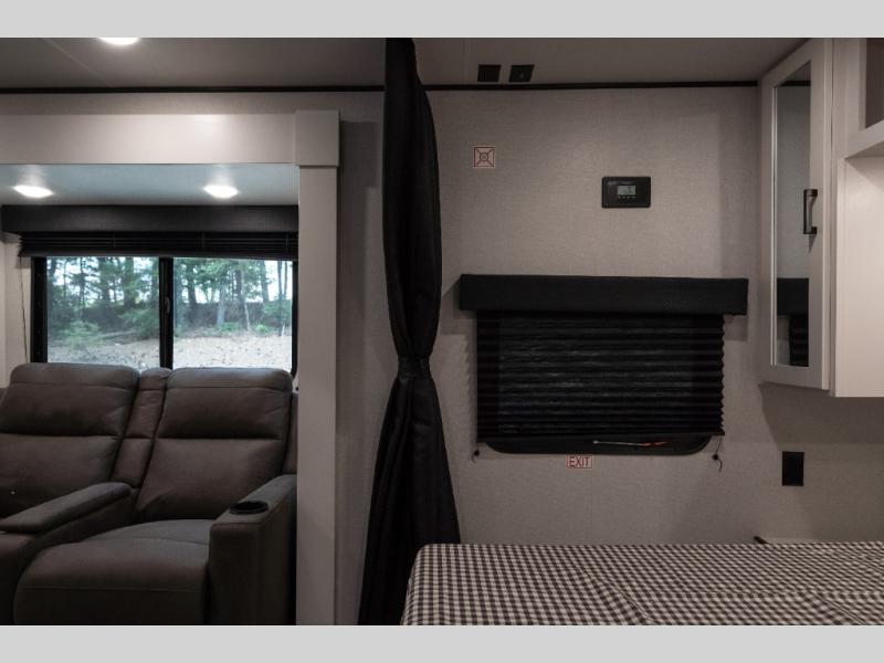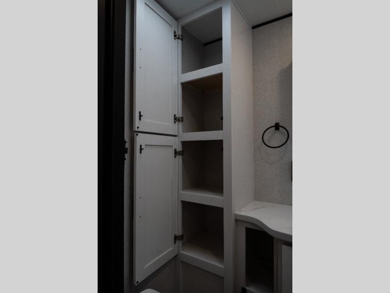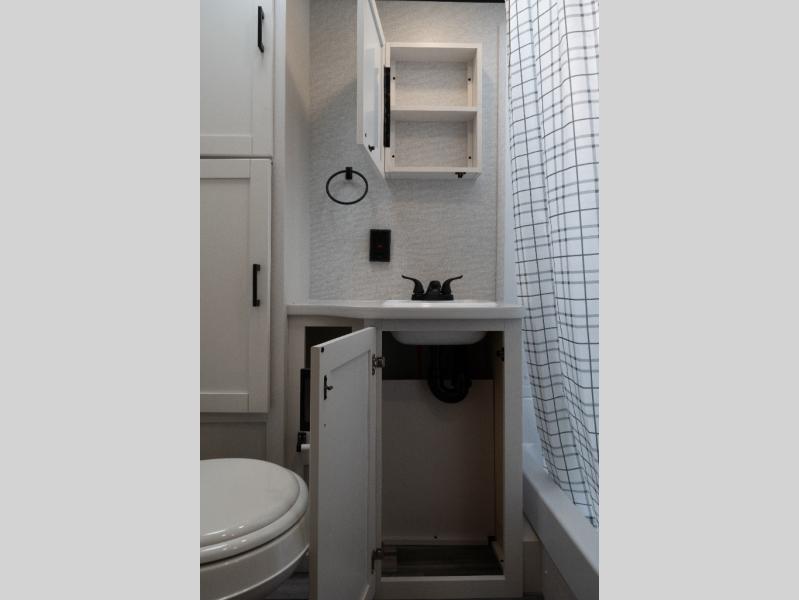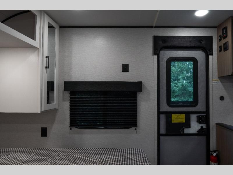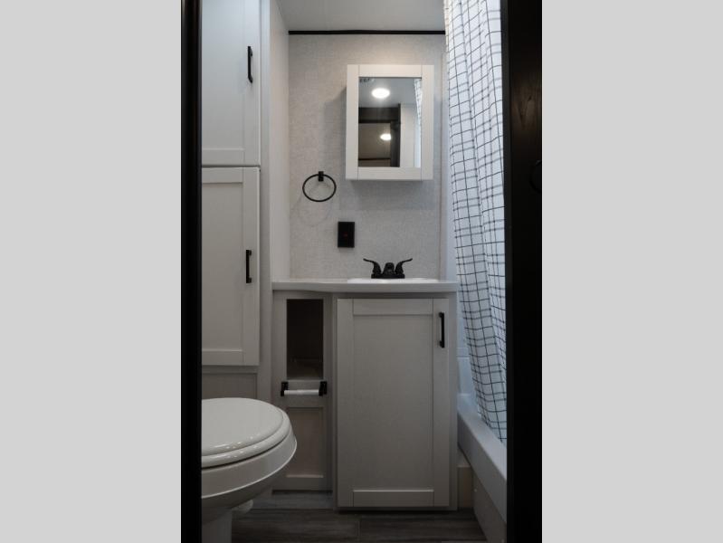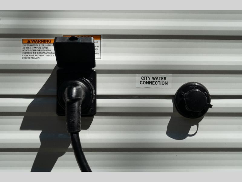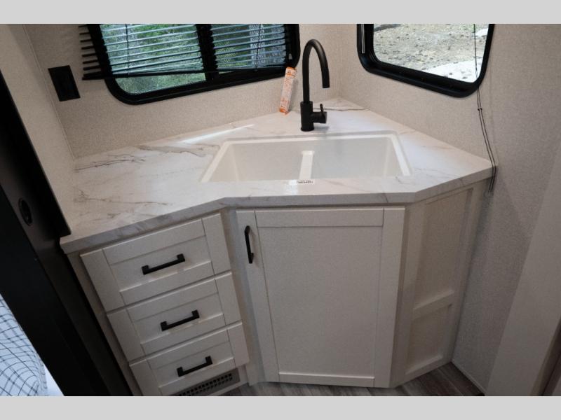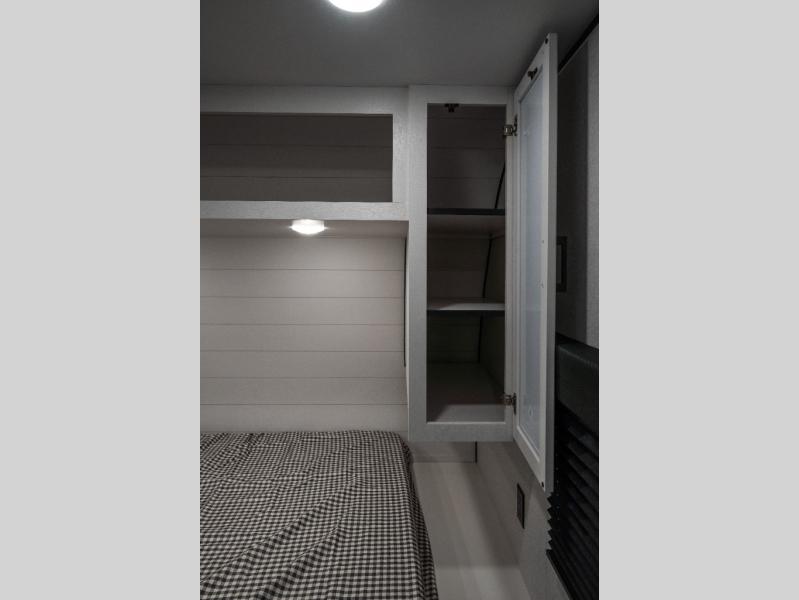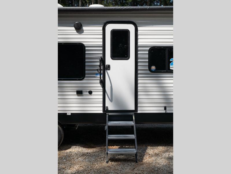 You will have a comfortable camping trip in this travel trailer! It offers full kitchen amenities including a pantry for snacks and such, plus a full rear corner bathroom for privacy and includes a shower. When you need a break, the semi-private bedroom up front offers a queen bed, dual wardrobes and a curtain to close, and the booth dinette can transform into a sleeping space as well. There is a 18' power awning with LED lights for you to enjoy this outdoor space into the night, plus exterior storage for your outdoor games and gear.