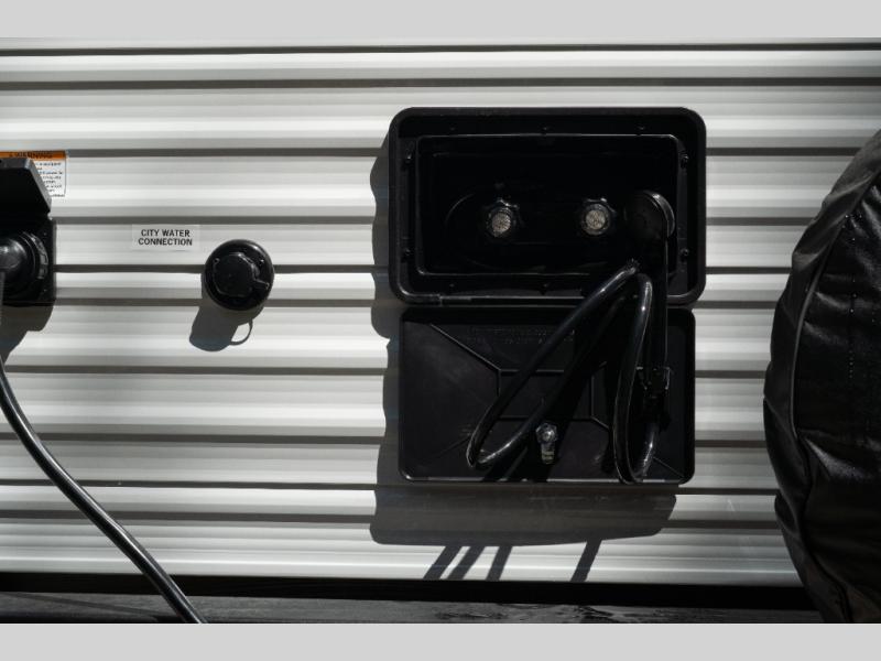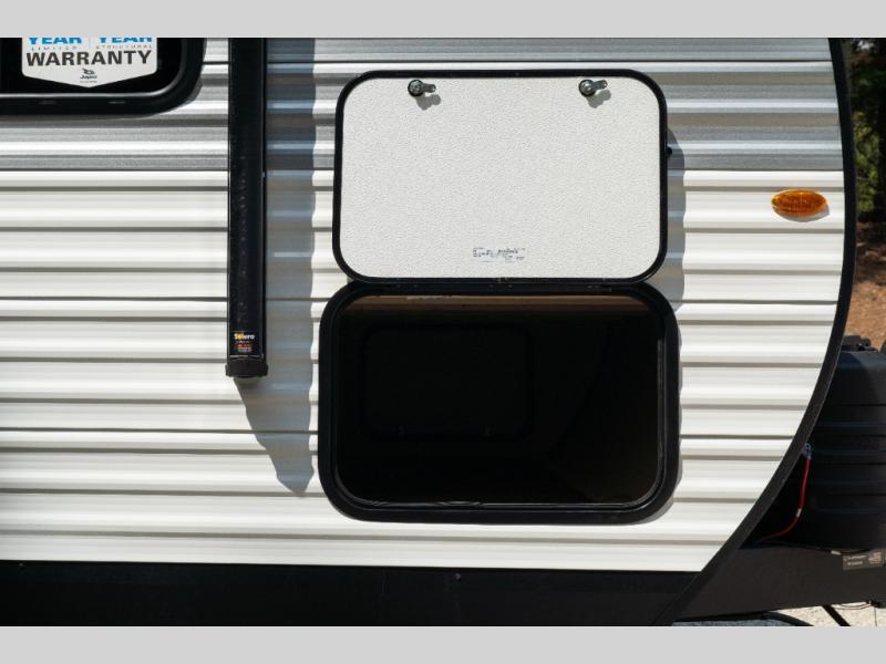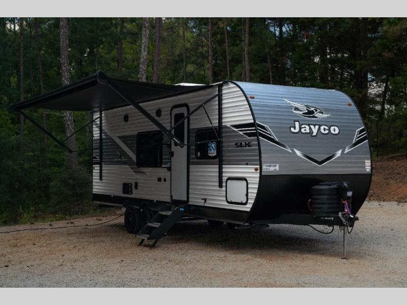 The Jayco Jay Flight SLX travel trailer is quite easy to own because it is lightweight for an easier towing experience. Built on a fully integrated A-frame with galvanized-steel, impact-resistant wheel wells, the Jay Flight SLX has quality at its very foundation. That quality continues on to the electric self-adjusting brakes, easy-lube hubs, Magnum Truss roof system, and LP quick connect. Some of what the mandatory Customer Value Package includes is backup camera prep, Keyed-Alike entry and baggage doors, and an on-demand tankless water heater.