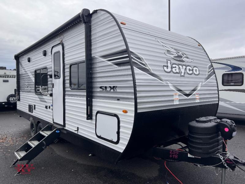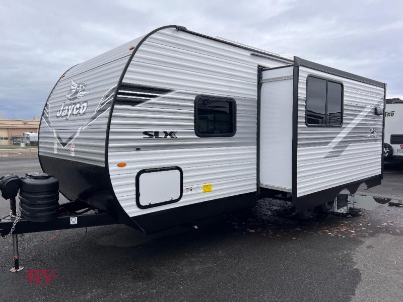 The Jayco Jay Flight SLX travel trailer is quite easy to own because it is lightweight for an easier towing experience. Built on a fully integrated A-frame with galvanized-steel, impact-resistant wheel wells, the Jay Flight SLX has quality at its very foundation. That quality continues on to the electric self-adjusting brakes, easy-lube hubs, Magnum Truss roof system, and LP quick connect. Some of what the mandatory Customer Value Package includes is backup camera prep, Keyed-Alike entry and baggage doors, and an on-demand tankless water heater.