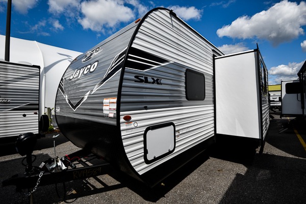 The Jayco Jay Flight SLX travel trailer is quite easy to own because it is lightweight for an easier towing experience. Built on a fully integrated A-frame with galvanized-steel, impact-resistant wheel wells, the Jay Flight SLX has quality at its very foundation. That quality continues on to the electric self-adjusting brakes, easy-lube hubs, Magnum Truss roof system, and LP quick connect. Some of what the mandatory Customer Value Package includes is backup camera prep, Keyed-Alike entry and baggage doors, and an on-demand tankless water heater.