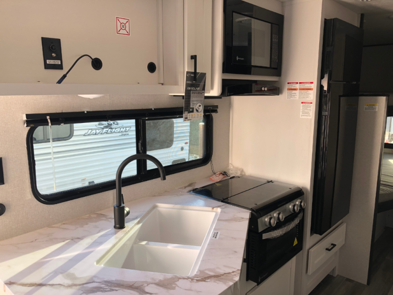 The Jayco Jay Flight SLX travel trailer is quite easy to own because it is lightweight for an easier towing experience. Built on a fully integrated A-frame with galvanized-steel, impact-resistant wheel wells, the Jay Flight SLX has quality at its very foundation. That quality continues on to the electric self-adjusting brakes, easy-lube hubs, Magnum Truss roof system, and LP quick connect. Some of what the mandatory Customer Value Package includes is backup camera prep, Keyed-Alike entry and baggage doors, and an on-demand tankless water heater.