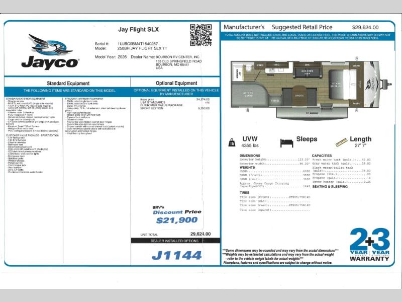 Leave the stress behind and hit the open road with confidence. For over 20 years, Jay Flight has been America’s best-selling travel trailer, trusted by countless families to deliver comfort, quality and adventure. The Jay Flight SLX Travel Trailer carries that legacy forward, designed for effortless travel—whether you're chasing sunsets at the beach, escaping to the mountains or finding solitude in the forest. Compact yet packed with premium features, it makes every journey feel like home.