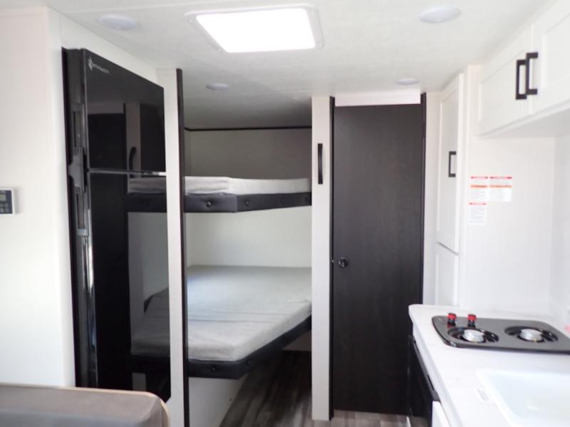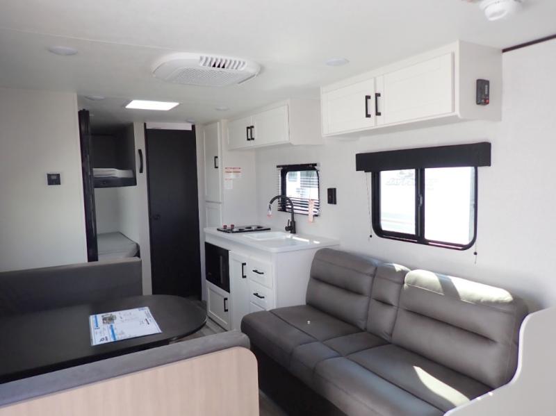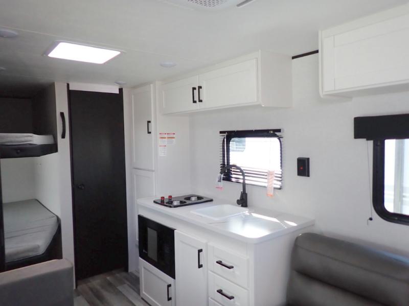 How does this sound to you? A value-packed bunk house camper that weighs less that 4,500 lbs but still room to sleep 8. In a nutshell that is the Jay Flight SLX 250BH. Double bunks, a walk-around queen bed, a full kitchen, and a full bath are all provided. The Jay Flight 250BH is a great choice for budget-minded families.
