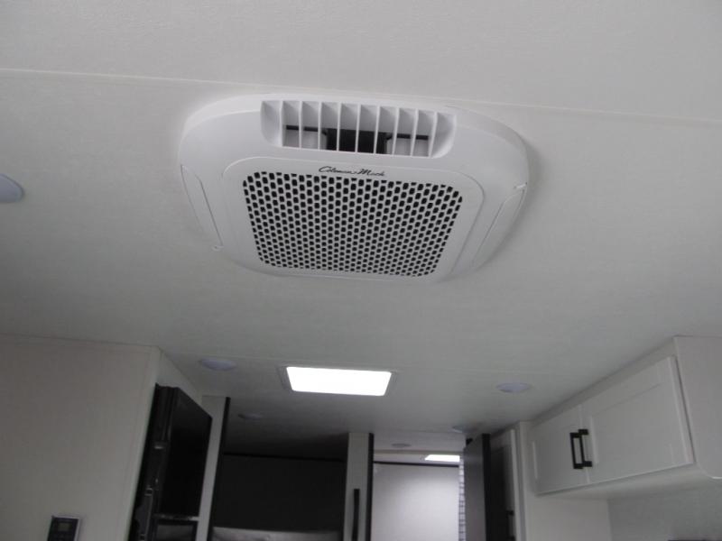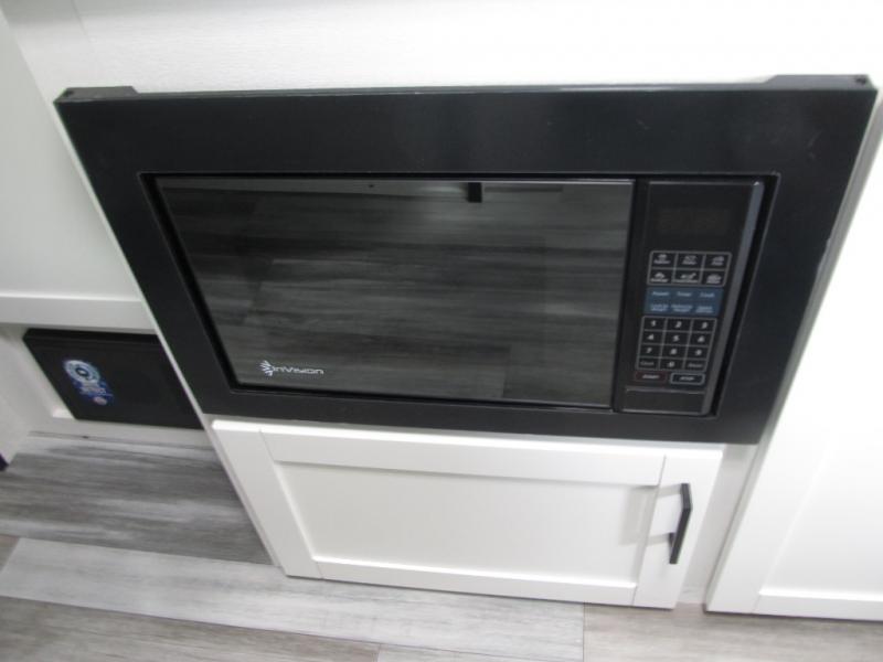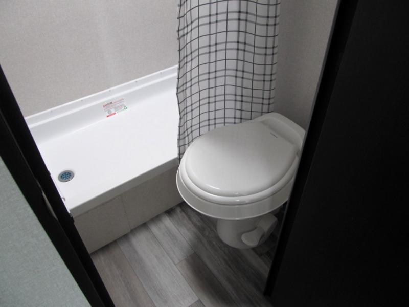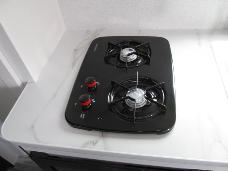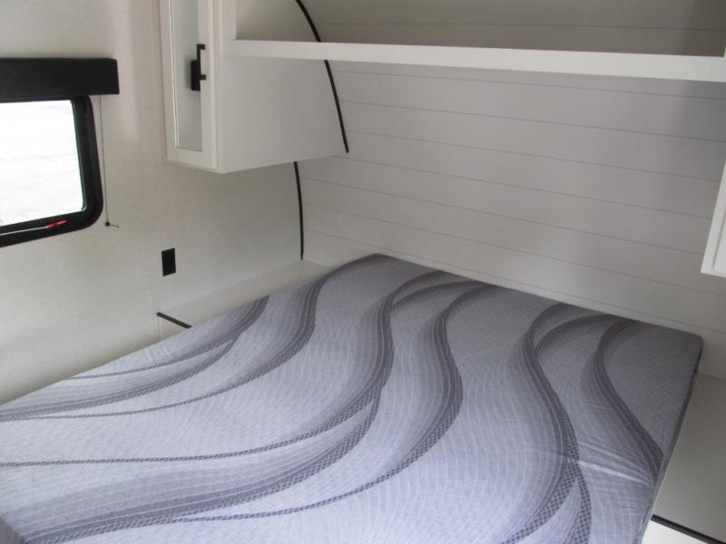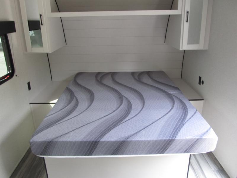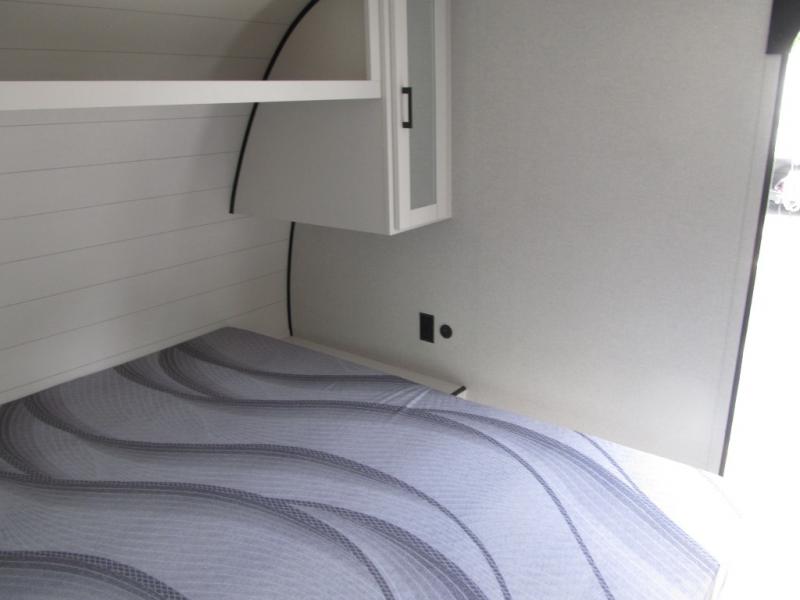 You can comfortably sleep eight to ten people in this trailer thanks to the double-size bunks, the 60" x 80" queen bed in the front bedroom, plus the booth dinette and jack-knife sofa in the main living area! The chef of your crew will have a two burner cooktop and microwave oven to prepare meals, and everyone can store their favorite drinks in the 12V refrigerator. The bathroom includes a 40" shower and a toilet, with the sink just outside of this room so others can brush their teeth if one is taking a shower before bed. The outside storage will let you bring along fishing poles and the 12' power awning will create a nice place to gather in the evenings!