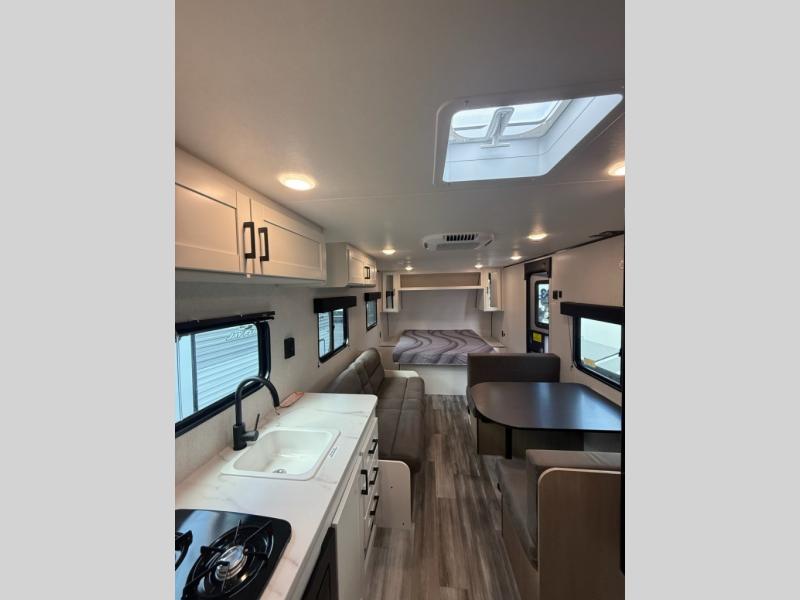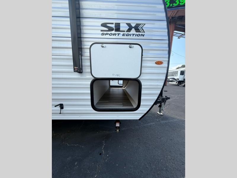 The Jayco Jay Flight SLX travel trailer is quite easy to own because it is lightweight for an easier towing experience. Built on a fully integrated A-frame with galvanized-steel, impact-resistant wheel wells, the Jay Flight SLX has quality at its very foundation. That quality continues on to the electric self-adjusting brakes, easy-lube hubs, Magnum Truss roof system, and LP quick connect. Some of what the mandatory Customer Value Package includes is backup camera prep, Keyed-Alike entry and baggage doors, and an on-demand tankless water heater.