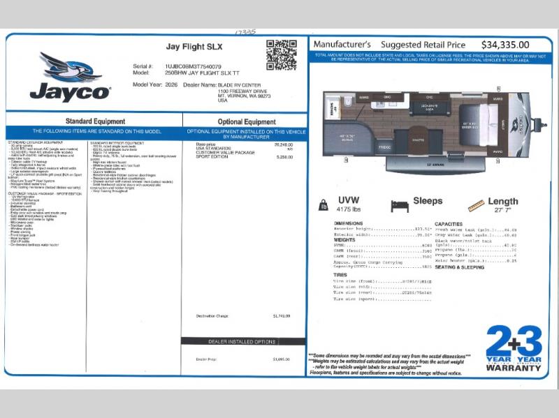 Jayco Jay Flight SLX travel trailer 250BHW Sport Edition highlights: