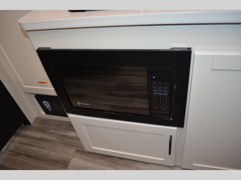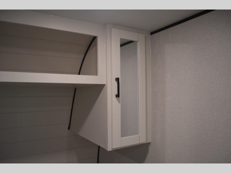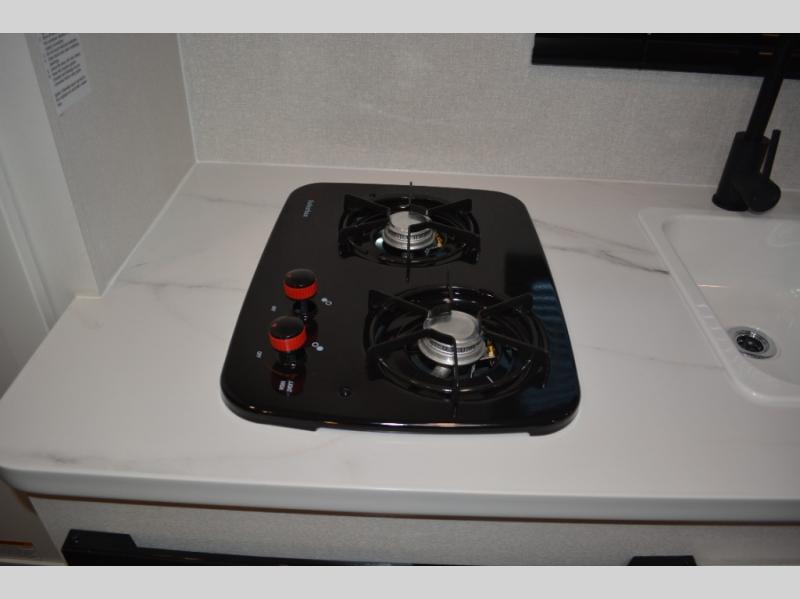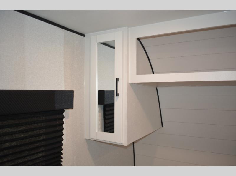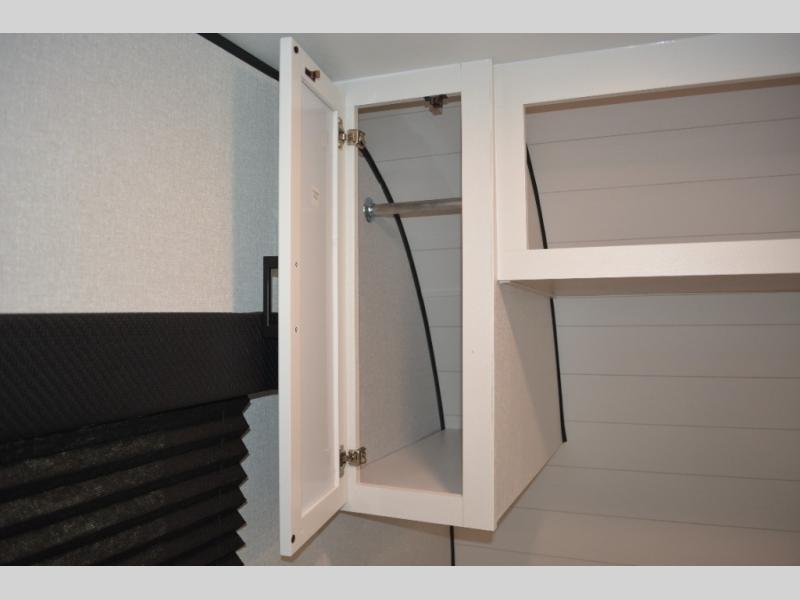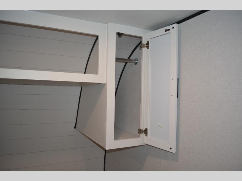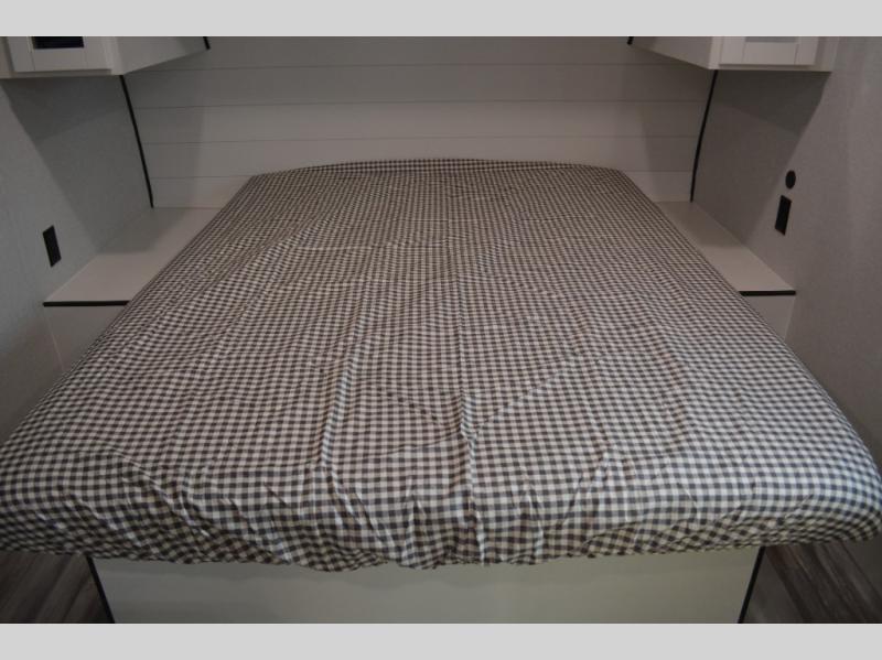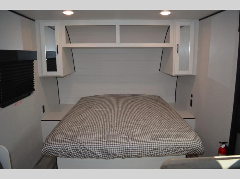 You can comfortably sleep eight to ten people in this trailer thanks to the double-size bunks, the 60" x 80" queen bed in the front bedroom, plus the booth dinette and jack-knife sofa in the main living area! The chef of your crew will have a two burner cooktop and microwave oven to prepare meals, and everyone can store their favorite drinks in the 12V refrigerator. The bathroom includes a 40" shower and a toilet, with the sink just outside of this room so others can brush their teeth if one is taking a shower before bed. The outside storage will let you bring along fishing poles and the 12' power awning will create a nice place to gather in the evenings!