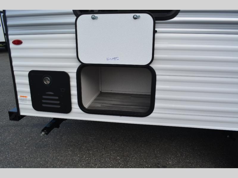 The Jayco Jay Flight SLX travel trailer is quite easy to own because it is lightweight for an easier towing experience. Built on a fully integrated A-frame with galvanized-steel, impact-resistant wheel wells, the Jay Flight SLX has quality at its very foundation. That quality continues on to the electric self-adjusting brakes, easy-lube hubs, Magnum Truss roof system, and LP quick connect. Some of what the mandatory Customer Value Package includes is backup camera prep, Keyed-Alike entry and baggage doors, and an on-demand tankless water heater.