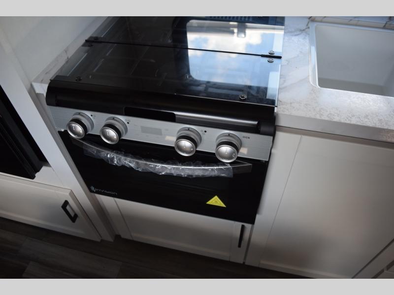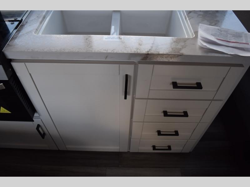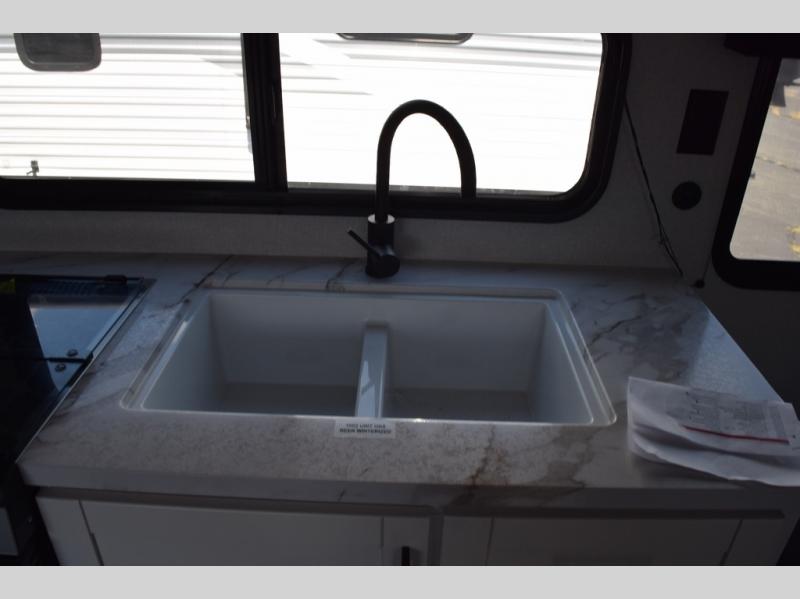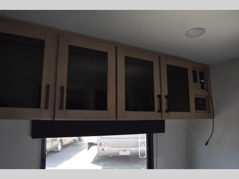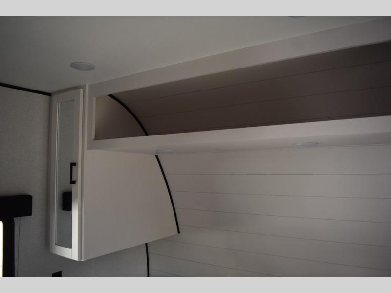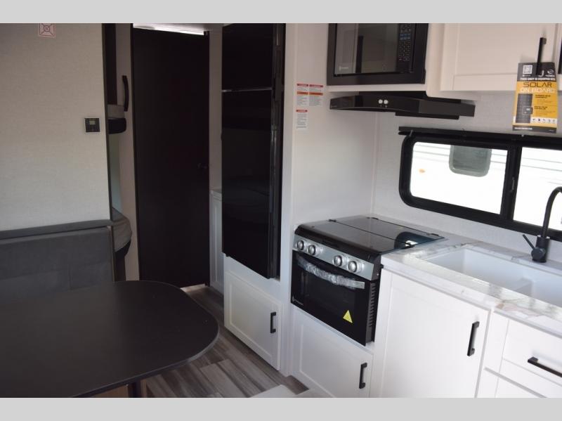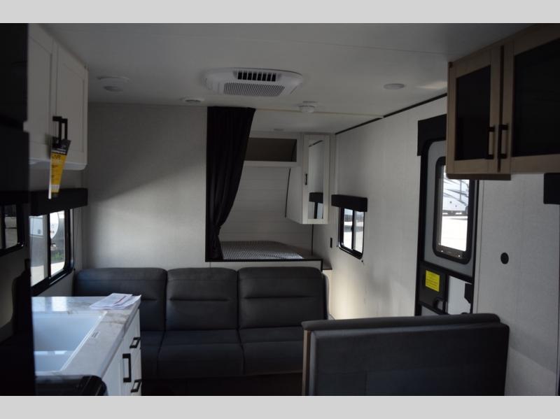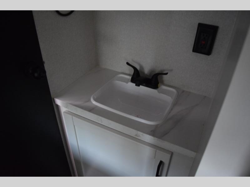 You can comfortably sleep eight to ten people in this trailer thanks to the double-size bunks, the RV queen bed in the front bedroom, plus the booth dinette and jack-knife sofa in the main living area! The chef of your crew will have a three burner cooktop and microwave oven to prepare meals, and everyone can store their favorite drinks in the 8 cu. ft. 12V refrigerator. The bathroom includes a tub/shower and a toilet, with the sink just outside of this room so others can brush their teeth if one is taking a shower before bed. The outside storage will let you bring along fishing poles and the 16' power awning with LED lights will create a nice place to gather in the evenings!