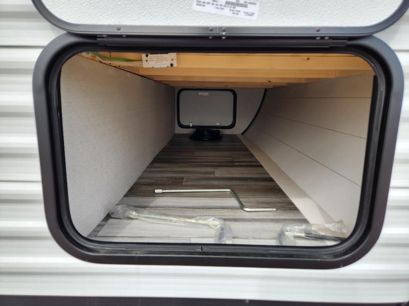 The Jayco Jay Flight SLX travel trailer is quite easy to own because it is lightweight for an easier towing experience. Built on a fully integrated A-frame with galvanized-steel, impact-resistant wheel wells, the Jay Flight SLX has quality at its very foundation. That quality continues on to the electric self-adjusting brakes, easy-lube hubs, Magnum Truss roof system, and LP quick connect. Some of what the mandatory Customer Value Package includes is backup camera prep, Keyed-Alike entry and baggage doors, marine grade exterior speakers, and an on-demand tankless water heater.