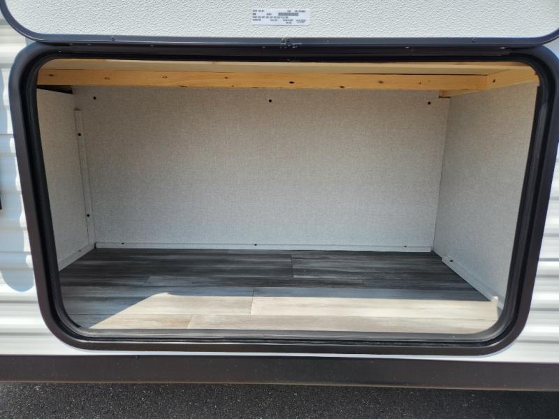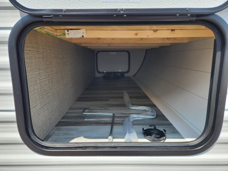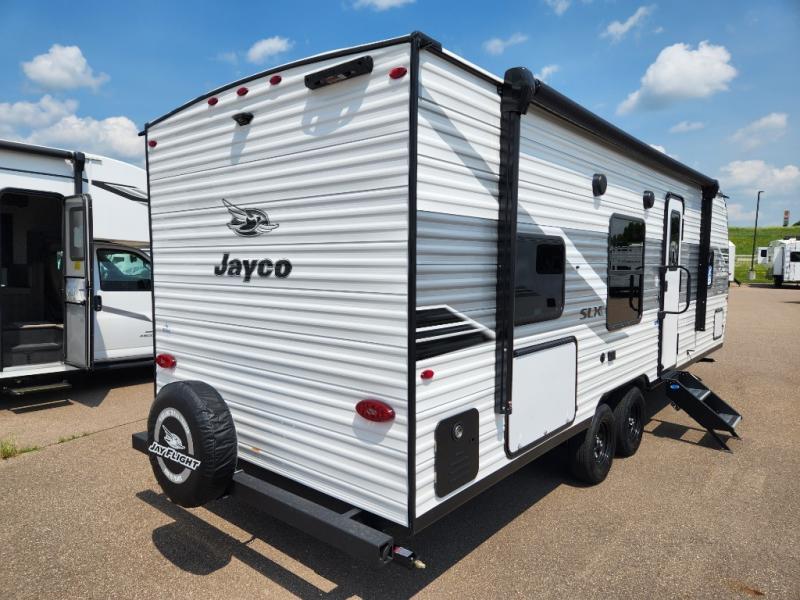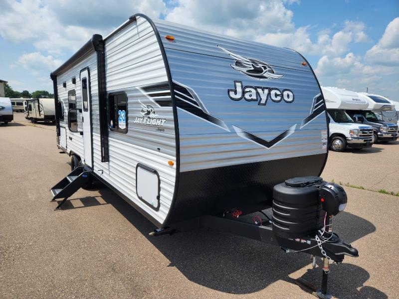 The Jayco Jay Flight SLX travel trailer is quite easy to own because it is lightweight for an easier towing experience. Built on a fully integrated A-frame with galvanized-steel, impact-resistant wheel wells, the Jay Flight SLX has quality at its very foundation. That quality continues on to the electric self-adjusting brakes, easy-lube hubs, Magnum Truss roof system, and LP quick connect. Some of what the mandatory Customer Value Package includes is backup camera prep, Keyed-Alike entry and baggage doors, marine grade exterior speakers, and an on-demand tankless water heater.