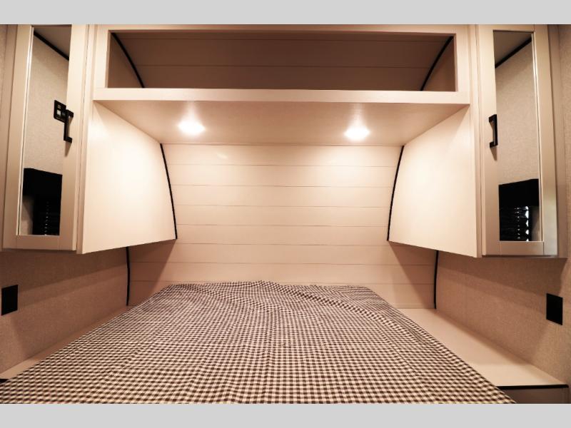 Couples enjoy the privacy of a front queen bed and convertible dining/living space.