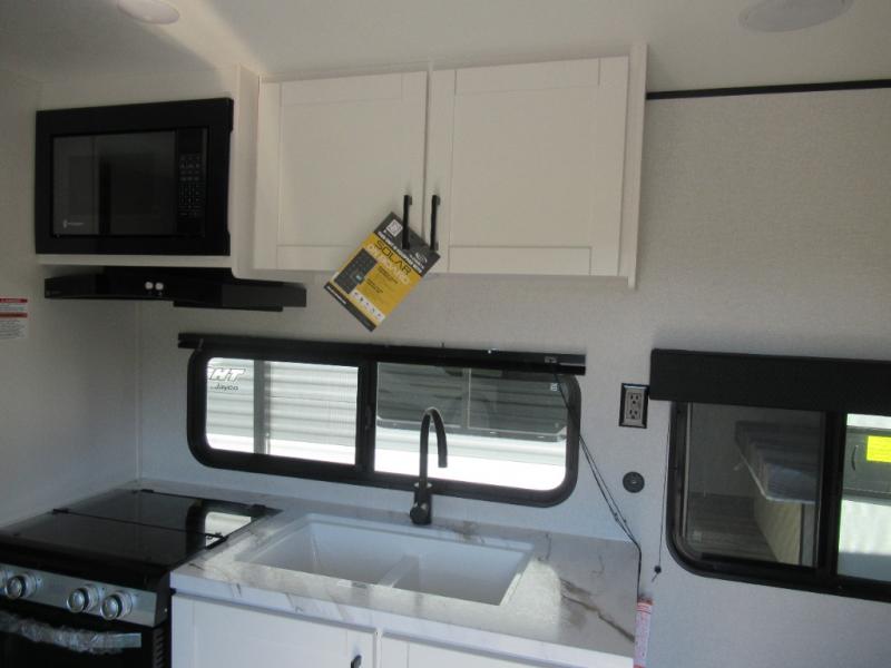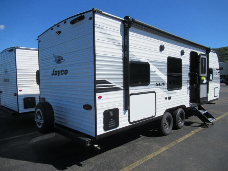 The Jayco Jay Flight SLX travel trailer is quite easy to own because it is lightweight for an easier towing experience. Built on a fully integrated A-frame with galvanized-steel, impact-resistant wheel wells, the Jay Flight SLX has quality at its very foundation. That quality continues on to the electric self-adjusting brakes, easy-lube hubs, Magnum Truss roof system, and LP quick connect. Some of what the mandatory Customer Value Package includes is backup camera prep, Keyed-Alike entry and baggage doors, and an on-demand tankless water heater.