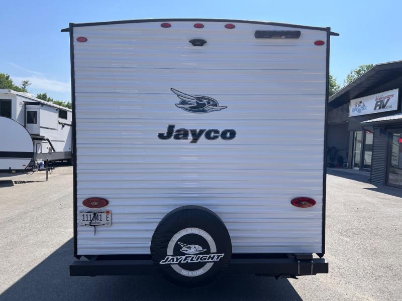 The Jayco Jay Flight SLX travel trailer is quite easy to own because it is lightweight for an easier towing experience. Built on a fully integrated A-frame with galvanized-steel, impact-resistant wheel wells, the Jay Flight SLX has quality at its very foundation. That quality continues on to the electric self-adjusting brakes, easy-lube hubs, Magnum Truss roof system, and LP quick connect. Some of what the mandatory Customer Value Package includes is backup camera prep, Keyed-Alike entry and baggage doors, marine grade exterior speakers, and an on-demand tankless water heater.