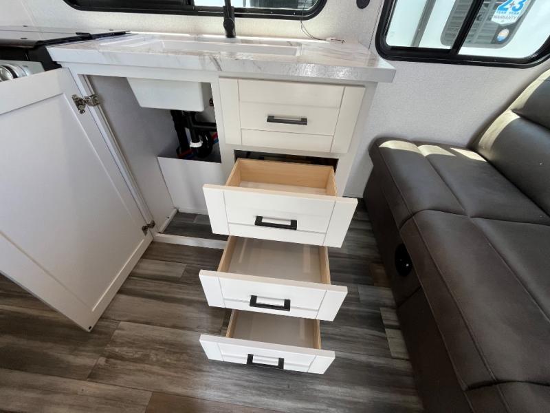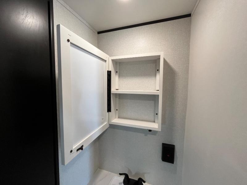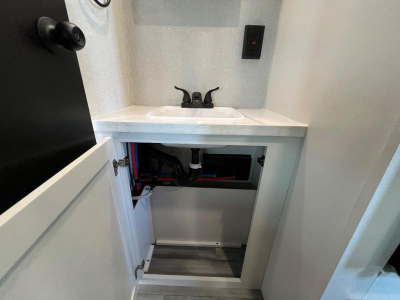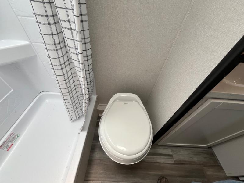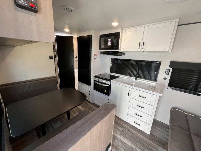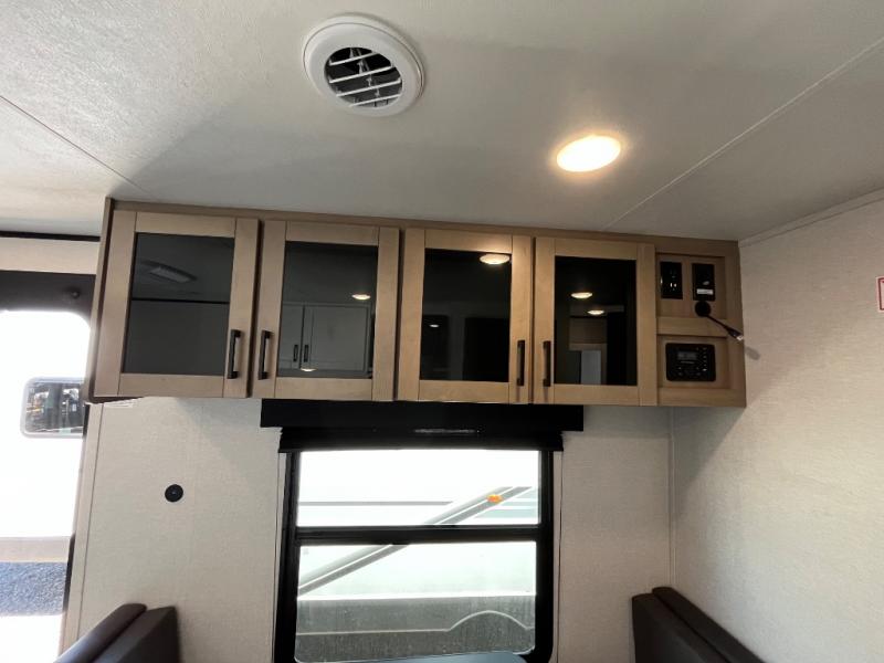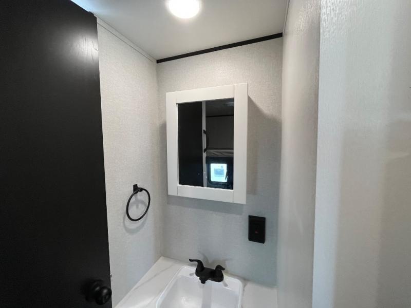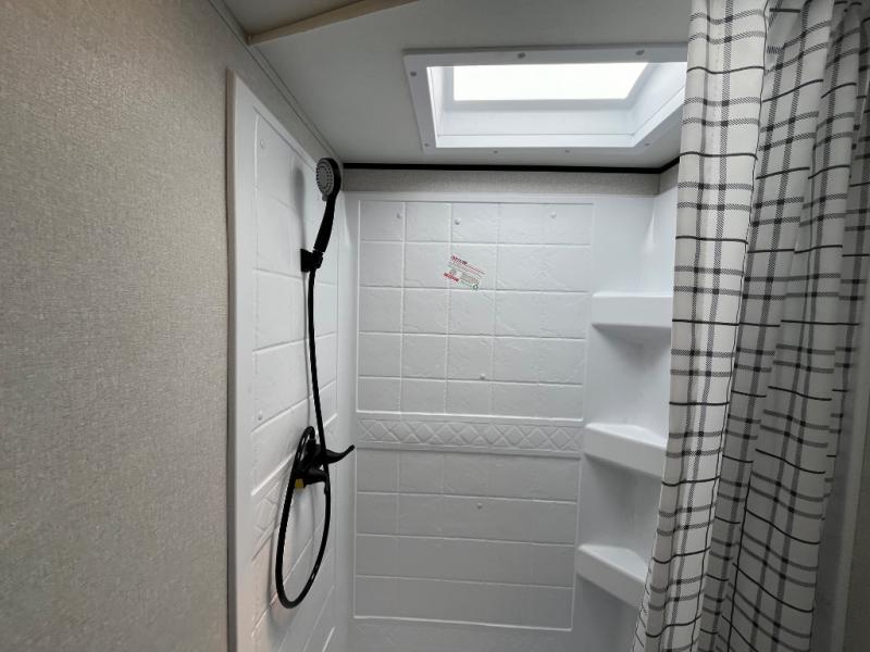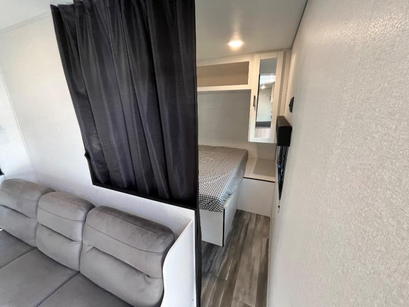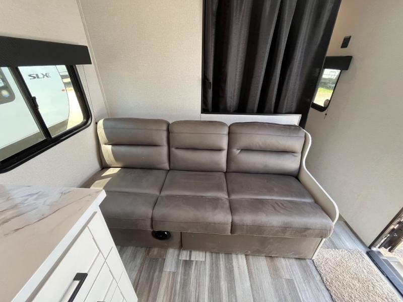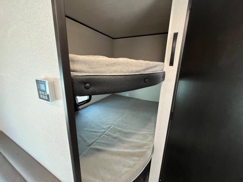 You can comfortably sleep eight to ten people in this trailer thanks to the double-size bunks, the RV queen bed in the front bedroom, plus the booth dinette and jack-knife sofa in the main living area! The chef of your crew will have a three burner cooktop and microwave oven to prepare meals, and everyone can store their favorite drinks in the 8 cu. ft. 12V refrigerator. The bathroom includes a shower and a toilet, with the sink just outside of this room so others can brush their teeth if one is taking a shower before bed. The outside storage will let you bring along fishing poles and the 16' power awning with LED lights will create a nice place to gather in the evenings!