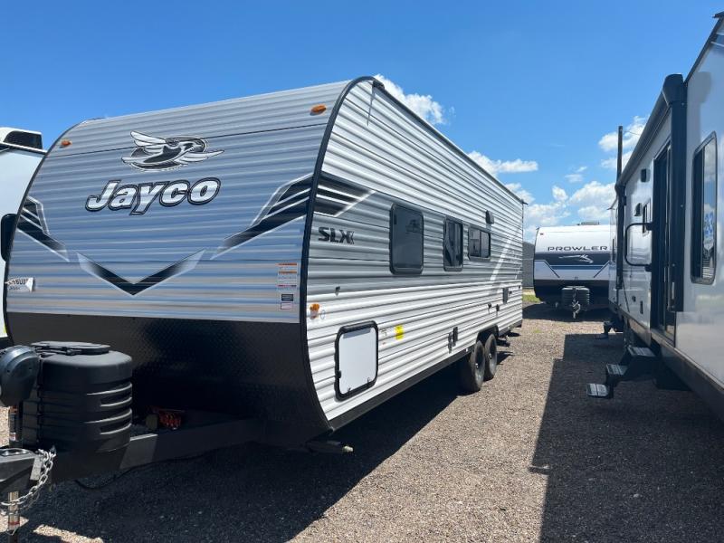 The Jayco Jay Flight SLX travel trailer is quite easy to own because it is lightweight for an easier towing experience. Built on a fully integrated A-frame with galvanized-steel, impact-resistant wheel wells, the Jay Flight SLX has quality at its very foundation. That quality continues on to the electric self-adjusting brakes, easy-lube hubs, Magnum Truss roof system, and LP quick connect. Some of what the mandatory Customer Value Package includes is backup camera prep, Keyed-Alike entry and baggage doors, and an on-demand tankless water heater.