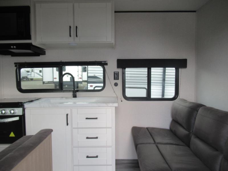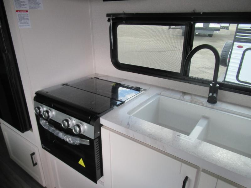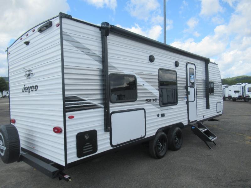 The Jayco Jay Flight SLX travel trailer is quite easy to own because it is lightweight for an easier towing experience. Built on a fully integrated A-frame with galvanized-steel, impact-resistant wheel wells, the Jay Flight SLX has quality at its very foundation. That quality continues on to the electric self-adjusting brakes, easy-lube hubs, Magnum Truss roof system, and LP quick connect. Some of what the mandatory Customer Value Package includes is backup camera prep, Keyed-Alike entry and baggage doors, and an on-demand tankless water heater.