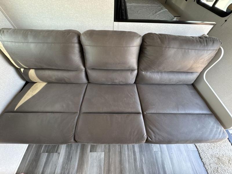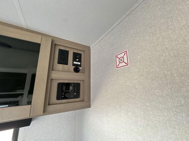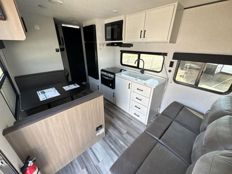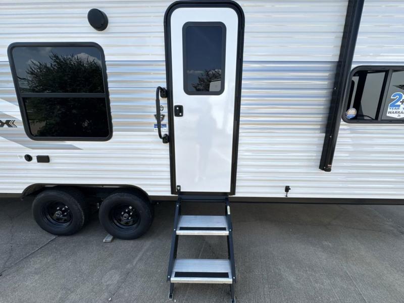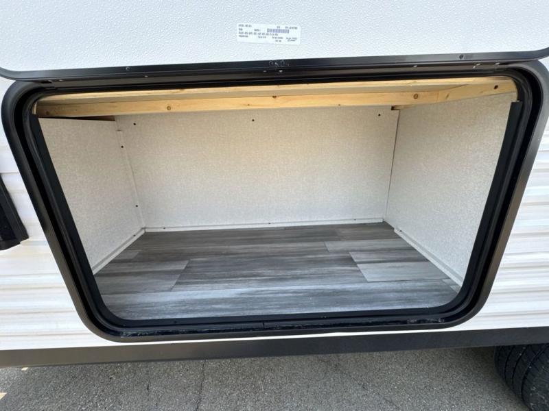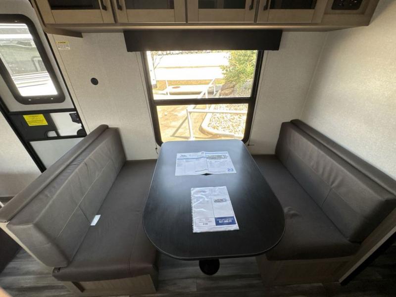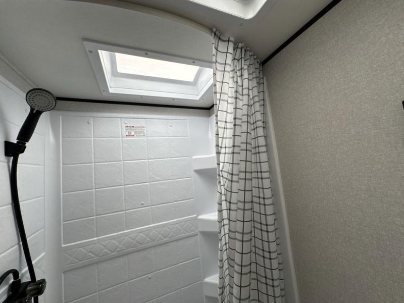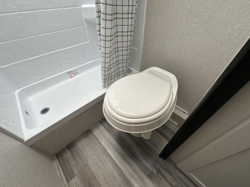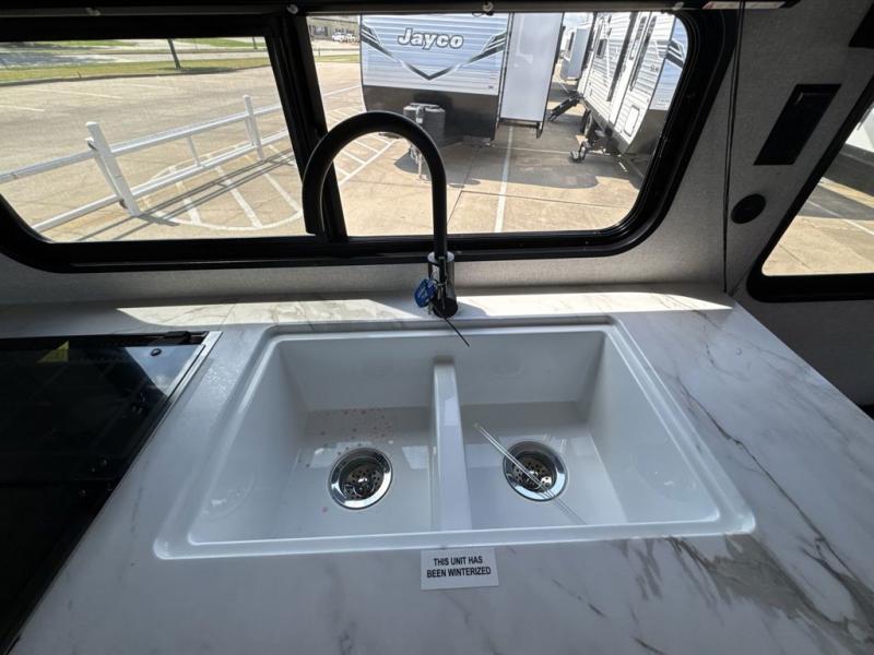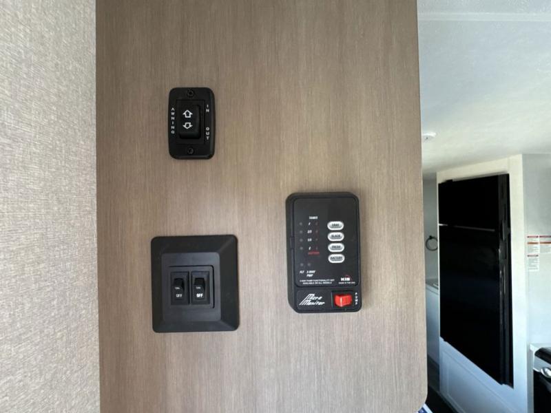 You can comfortably sleep eight to ten people in this trailer thanks to the double-size bunks, the RV queen bed in the front bedroom, plus the booth dinette and jack-knife sofa in the main living area! The chef of your crew will have a three burner cooktop and microwave oven to prepare meals, and everyone can store their favorite drinks in the 8 cu. ft. 12V refrigerator. The bathroom includes a shower and a toilet, with the sink just outside of this room so others can brush their teeth if one is taking a shower before bed. The outside storage will let you bring along fishing poles and the 16' power awning with LED lights will create a nice place to gather in the evenings!