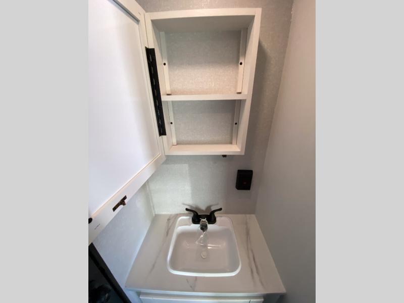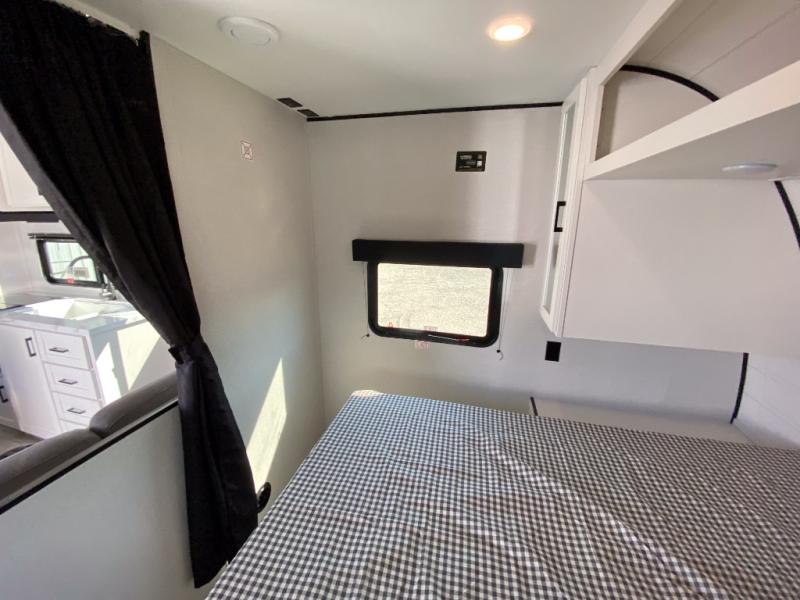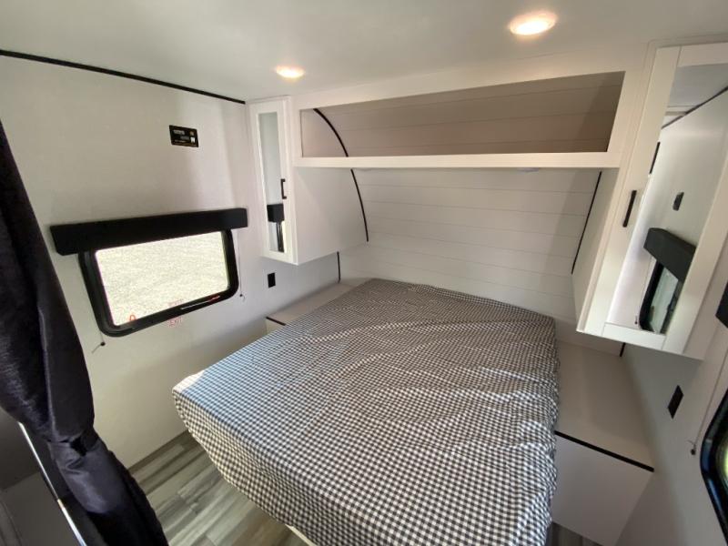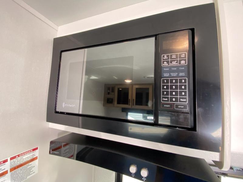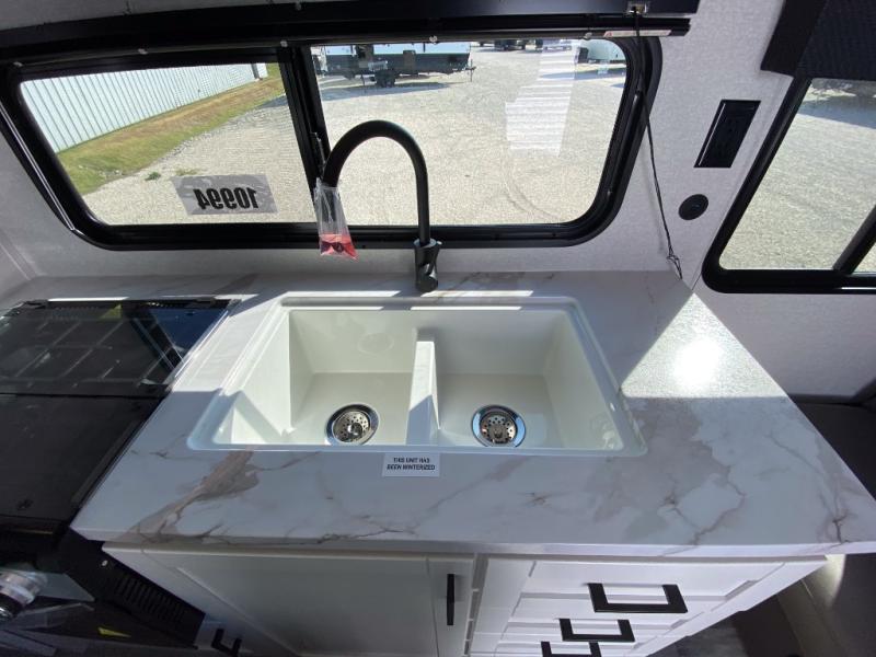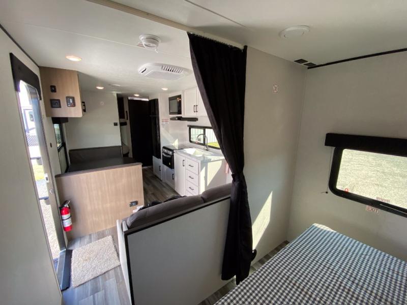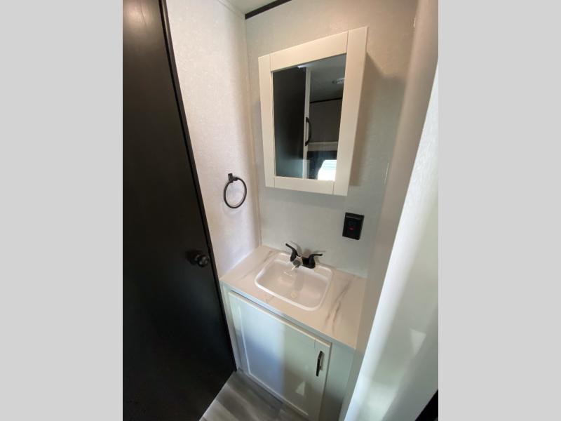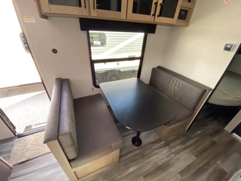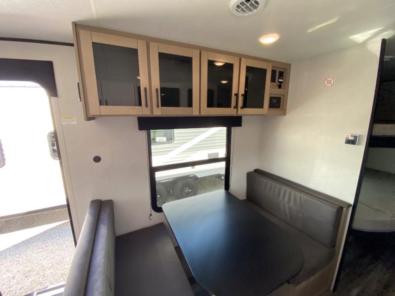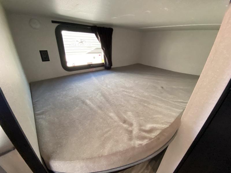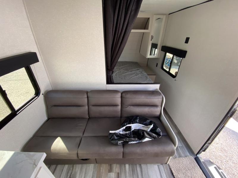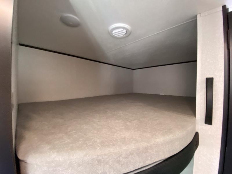 You can comfortably sleep eight to ten people in this trailer thanks to the double-size bunks, the RV queen bed in the front bedroom, plus the booth dinette and jack-knife sofa in the main living area! The chef of your crew will have a three burner cooktop and microwave oven to prepare meals, and everyone can store their favorite drinks in the 8 cu. ft. 12V refrigerator. The bathroom includes a shower and a toilet, with the sink just outside of this room so others can brush their teeth if one is taking a shower before bed. The outside storage will let you bring along fishing poles and the 16' power awning with LED lights will create a nice place to gather in the evenings!